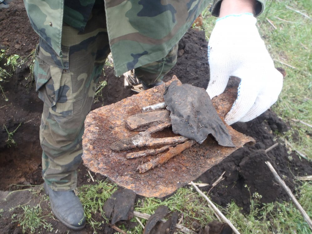 Все из одиночек.Ремень скатаный был,скорее всего в вещмешке носил.Из подписного попался ремень К.В.Д.,а также портмоне с остатками бумаг.Попытаемся ,если даст бог,вернуть и имена.