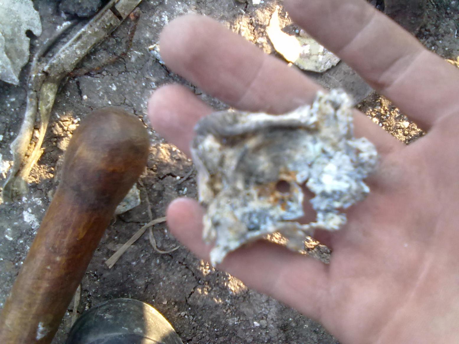 место находок: была усадьба, потом хуторок до вов, встречался настрел, а тут полезли банки,склянки и т.д. похоже что помоечка, но вот что нарукоблудили, так и несмог перевести.