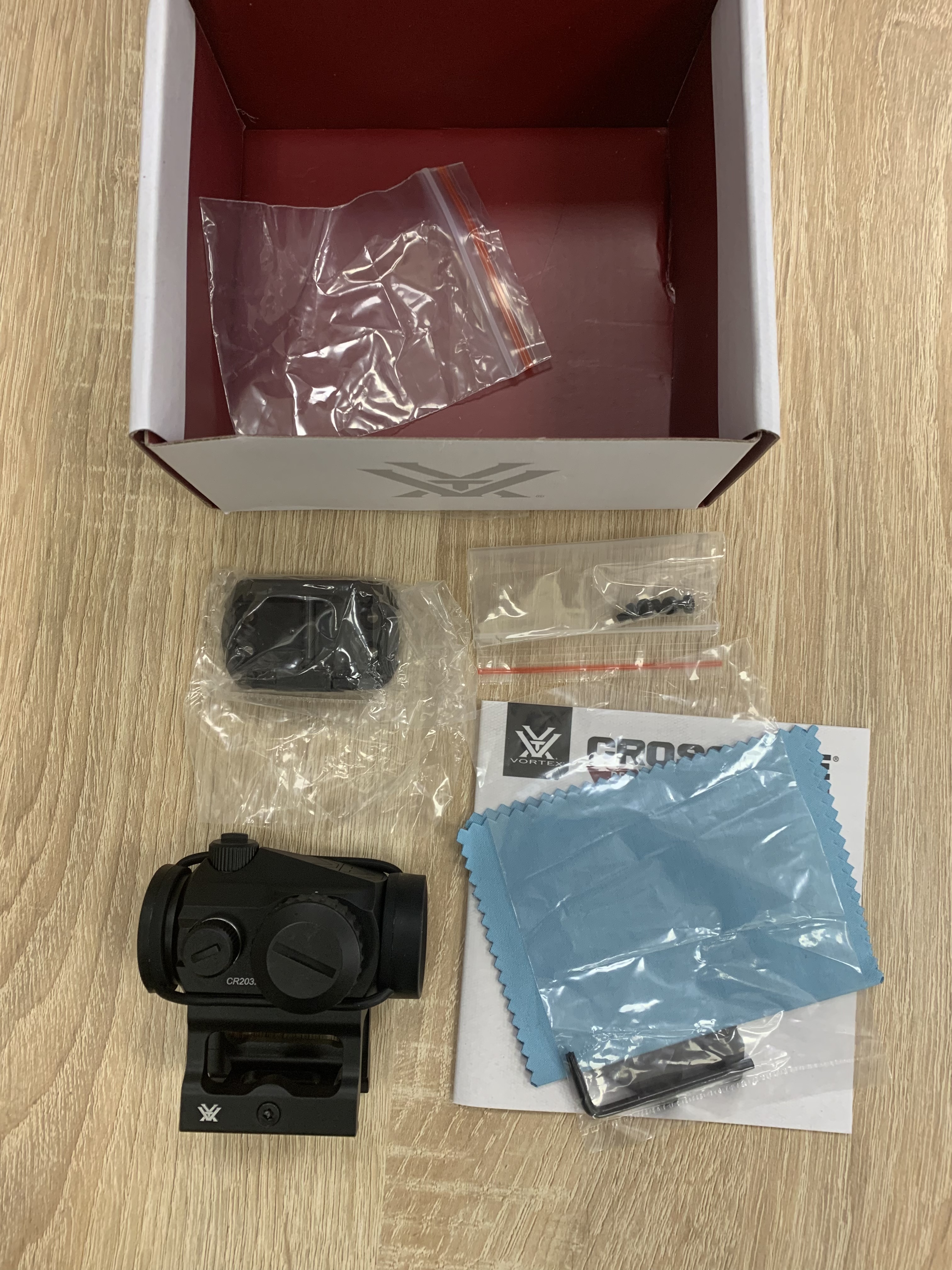 В наявності коліматор та збільшувач(магніфер) фірми Vortex. Доставлено зі США. Комплект не використовувався. В комплекті з коліматором йде батарейка живлення CR 2032.