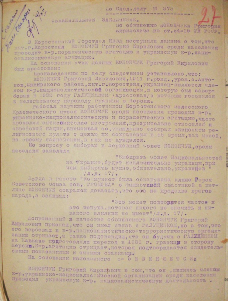 Интересный документ, не спорю, еще одна судьба "врага", "профашиско-английской направленности". Интересно бы узнать дату документа, но мне кажется 38-39 гг. Интеллигент высказал свое мнение (причем правильное) и был, скорей всего, сдан соседями, сослуживцами и пр., а может кому-то не понравился. Знакомая история, ничто не меняется в жизни, сейчас ситуация такая-же, только способ расправы более изуверский (лишить допуска и уволить, отказать в поступлении в..., не взять на работу, написать в личном деле и пр., пр.). На мой взгляд, эти документы отражают причины наших неудач в 41-м г. Народ, где каждый 10-й сидит, расстрелян, где колхозник не имеет гражданства, просто не захочет воевать за "родную" власть. Извиняюсь, всего лишь высказал мнение.