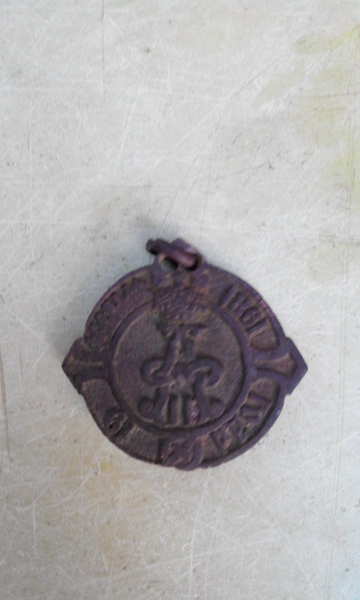 На последнем копе рядом с войной выскочил такой медальён.Удивительно,там где были бои,где рвались снаряды и мины,не тронутым пролежал.Война его пощадила.Не зарыла в землю,не погнула гусеницами,не пробила осколком. У месных старожила спросили,сколько лет Вашему селу.Примерно,говорит,лет 200.Когда показали деду эту штуку,дед долго не мог ни чего сказать.Рядом пацаны стояли,давай фотографировать.
