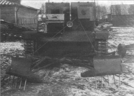 Противоминный трал ТР-28 бойкового типа, смонтированный на танке Т-28.jpg