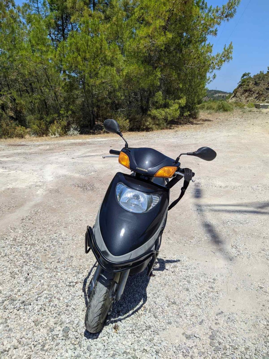 сегодня вода в море холодная, поэтому предложил жене прокатиться вокруг Мармариса на мопеде. 125-ка хонда старая какая-то хотя на спидометре 29 тысяч и свежая резина. по серпантинам не тянет от слова совсем. в гору двое - не больше 30 км/ч. по трассе больше 60 не разгонял - страшно как-то. ну и шлем кастрюлька, ветровика нет - пчела губу в кровь разбила, хорошо хоть в рот не залетела. о обгонах речь вообще не шла - меня обгоняли абсолютно все, кроме велосипедистов и пешеходов. в Турции идеальные дороги и очень вежливые водители. как у нас в пыли, грязи и ямах можно ездить я не знаю и точно не хочу. как только съехал на грунтовку - сразу пошли удары подножкой о землю и камни. за 5 часов проехал всего чуть больше 100 км с регулярными остановками, но все равно спина сильно устала от неудобной посадки. жена сказала что вообще больше на такое не сядет ибо страшно и неудобно - ноги болели так, что пришлось ее перед собой как ребенка посадить, а самому назад сдвинутся. и тут чудо - у меня руки приняли более удобное положение. так последние 30 км и доехали... скутер это таки штука на старого больного любителя рыбалки или доехать до работы по ненапряжному трафику несколько км максимум. З.Ы. за $20 мы увидели очень много и даже под задорный визг и мат получилось немного позакладывать на серпантинах. думаю эту поездку мы только и запомним со всего путешествия на море...