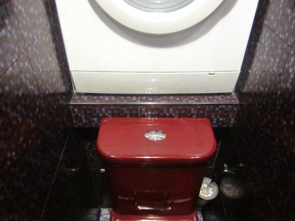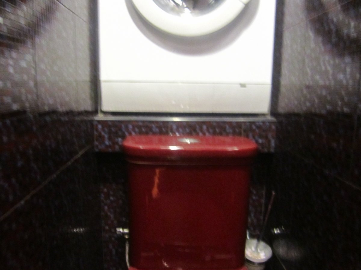 Та то вона за унітазом стоїть. В ніші. Унітаз висунули вперед і усьо- вигідно і сердито. Так може ліпше видно: