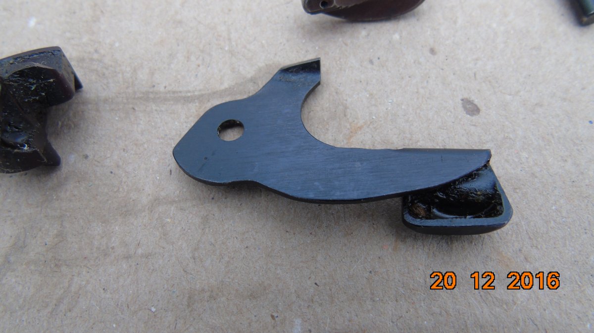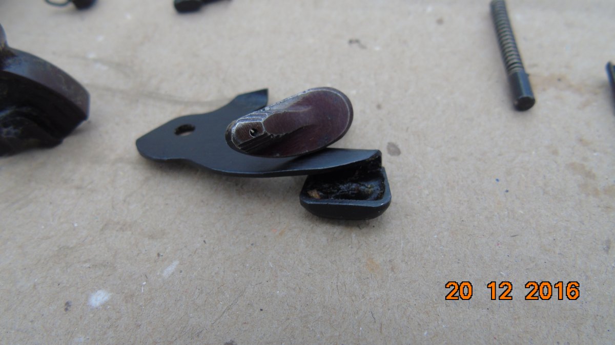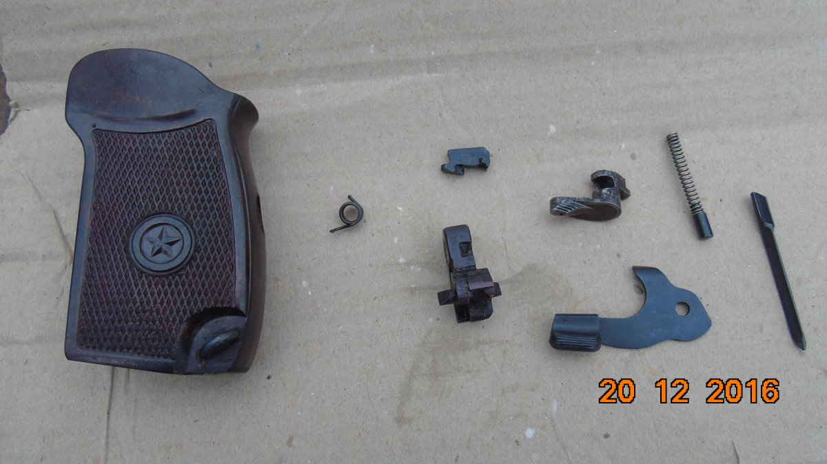 Продам вот такие детали для ПМ: 1.Курок красно-коричневый (склад в масле)-350грн-Продано 2.Затворная задержка дутая,широкий зуб (склад в масле)-350грн-Продано 3.Выбрасыватель с пружинкой и гнетком (склад)-280грн. 4.Ударник (склад)-150грн. 5.Предохранитель красный б/у со следами корозии,самодельная пружинка,работает отлично-160грн-Продано. 6.Пружинка шептала б/у-30грн. 7.Бакелитовая рукоять б/у с винтом-60грн-Продано