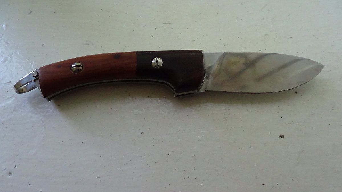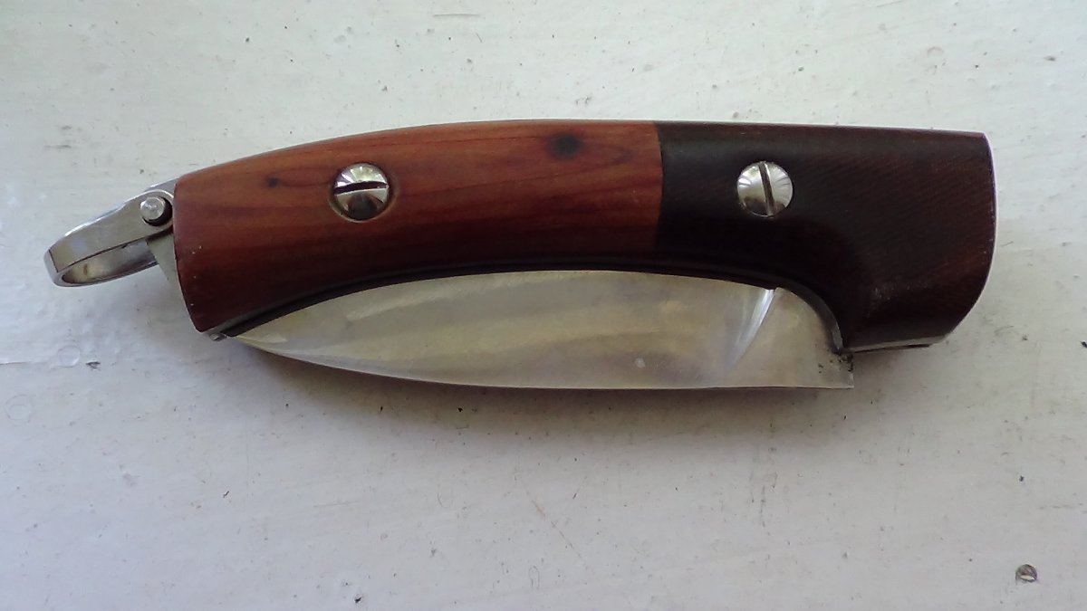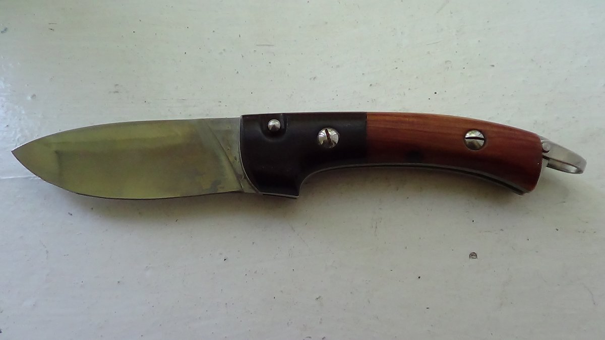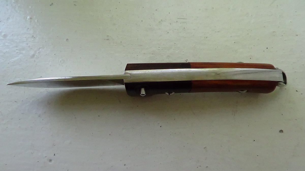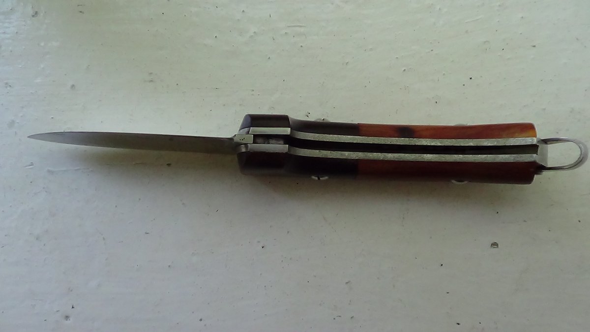 Мощный выкидной нож ручной работы. Выброс клинка отличный. Длина -22 см, длина лезвия -10 см, обух -3 мм Цена 1000грн.