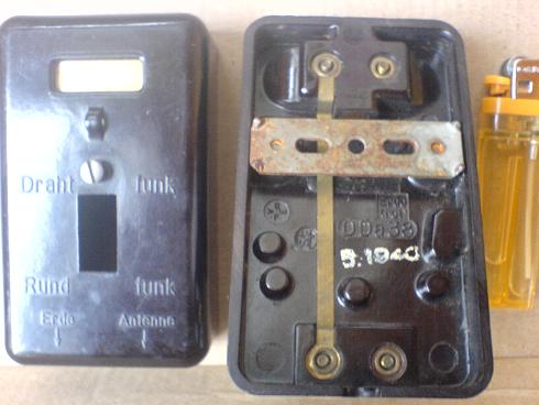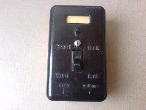 Эта штуковина - скорее всего "грозовой переключатель". Служит для заземления антенны приемника или рации в случае грозы, чтобы избежать повреждения аппаратуры разрядом молнии или статического электричества. Раньше обычно в деревнях ими пользовались.