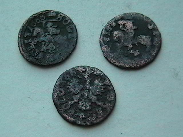 Солиды Яна II Казимира. Количество отчеканенных монет огромнейшее. В Ваших краях под катушку МД боратинки попадаются немного реже пробок. Гляньте здесь: http://baracinka.at.tut.by/default.html .