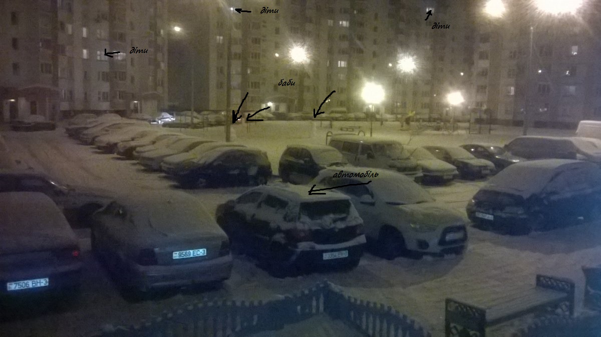 Діти зраділи що перший сніг, ось і ліплять баб що у вас, що і в нас. Завтра діти будуть шпілити в танки бо сніг набридне.