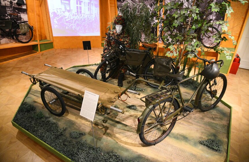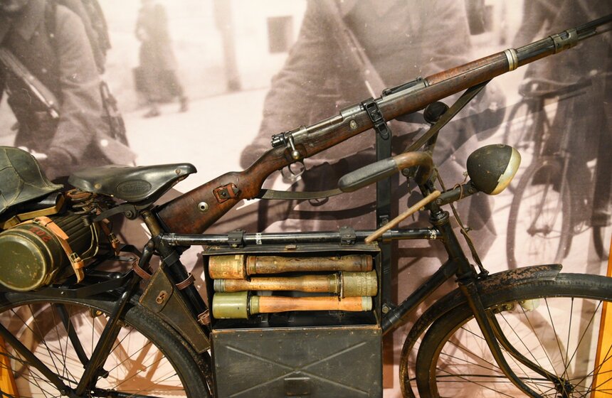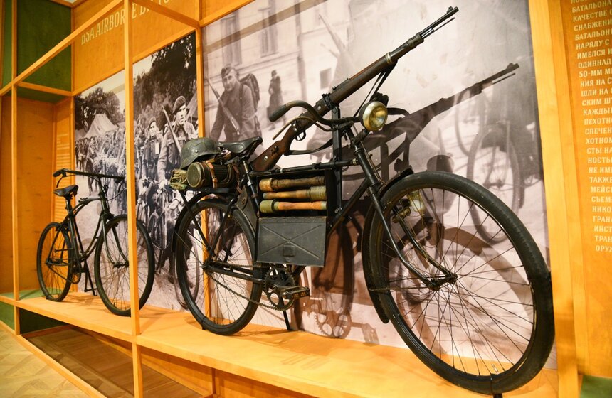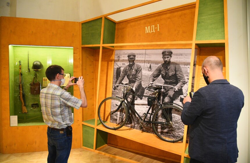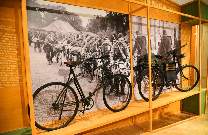 В Музее военной формы открылась выставка "Самокатчики, вперед!" Подлинные военные велосипеды можно увидеть в Музее военной формы. Выставочный проект, впервые представляемый в России, приурочен к 75-летию Победы и продолжит свою работу до 4 ноября 2020 года. Посетители экспозиции увидят снаряжения и вооружения велосипедных (самокатных) команд и подразделений XIX–XX века в вооруженных силах стран Западной Европы, Российской империи и Советского Союза. Фото: Москва 24/Никита Симонов https://www.m24.ru/galleries/obshchestvo/31072020/8714