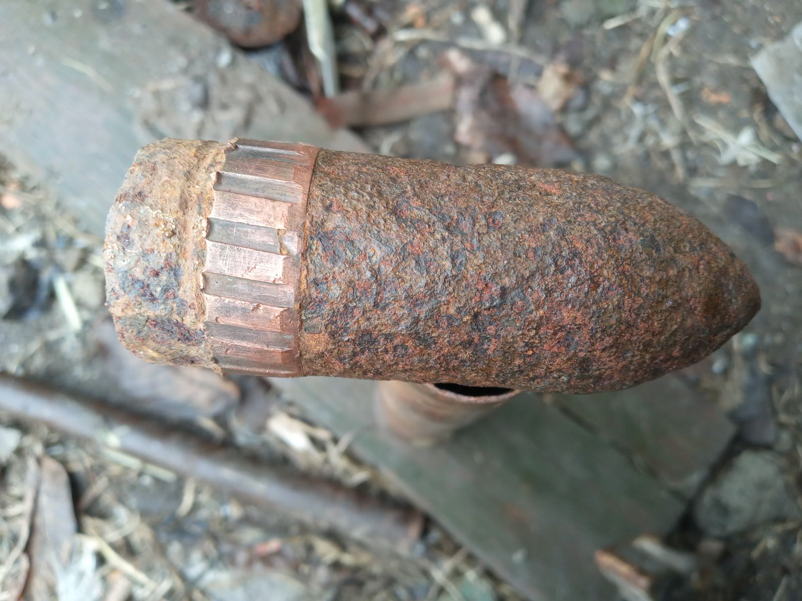 Пост № 3. Гильза 37х250R, немец к 3,7-см противотанковой (ну или танковой) пушке. Фото №1. А снаряд американец - 3,7-см McLlean. Фото № 3 и 4.