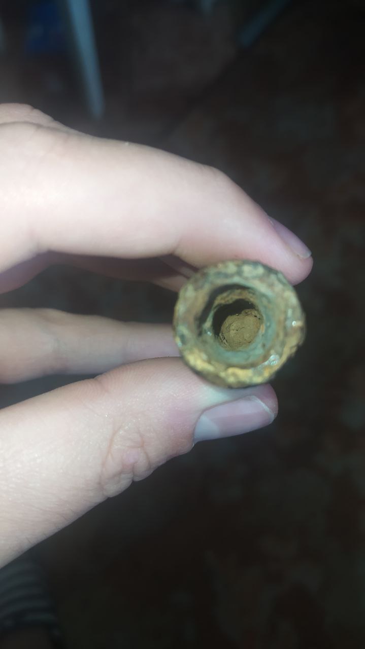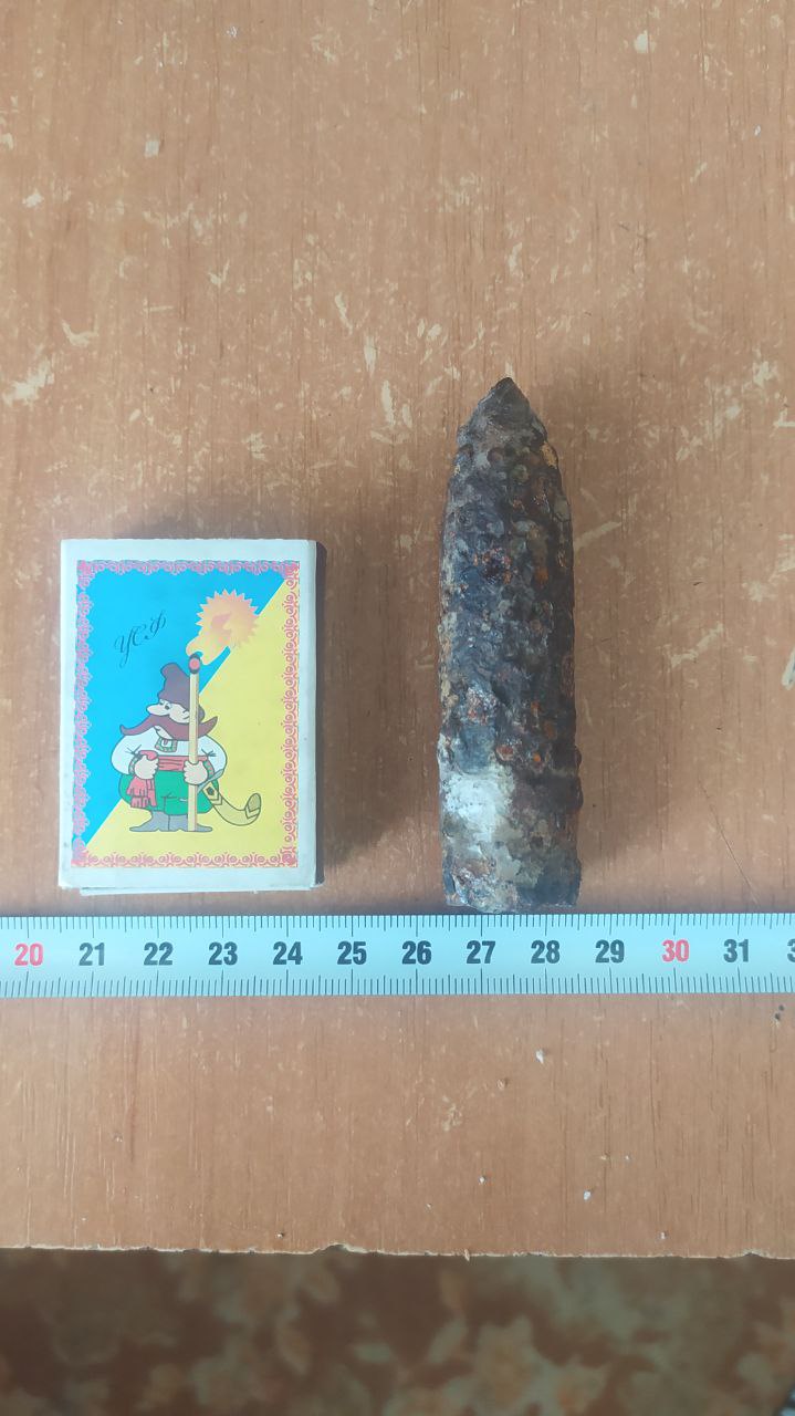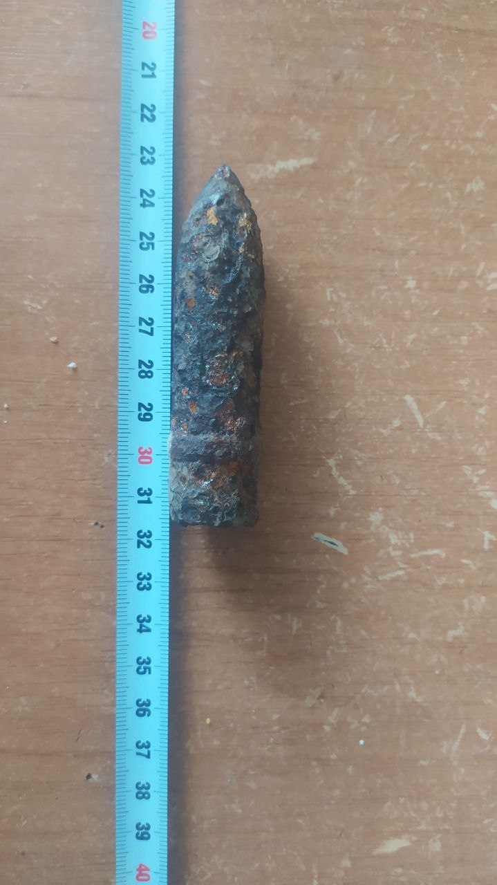 Доброго дня. Можете також будь ласка підказати по такому снарядику. Чий і наскільки безпечний. Я так розумію знизу був донний взривач глибина отвору приблизно 40мм.