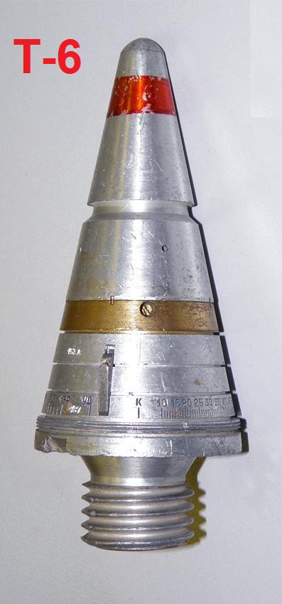 ...бАчиться - пiдривАч Т-5 (пiсля спрацювання) Артиллерийский взрыватель Т-5 (головной, дистанционный, предохранительного типа;предназначается для осколочных гранат среднего калибра к зенитным пушкам)