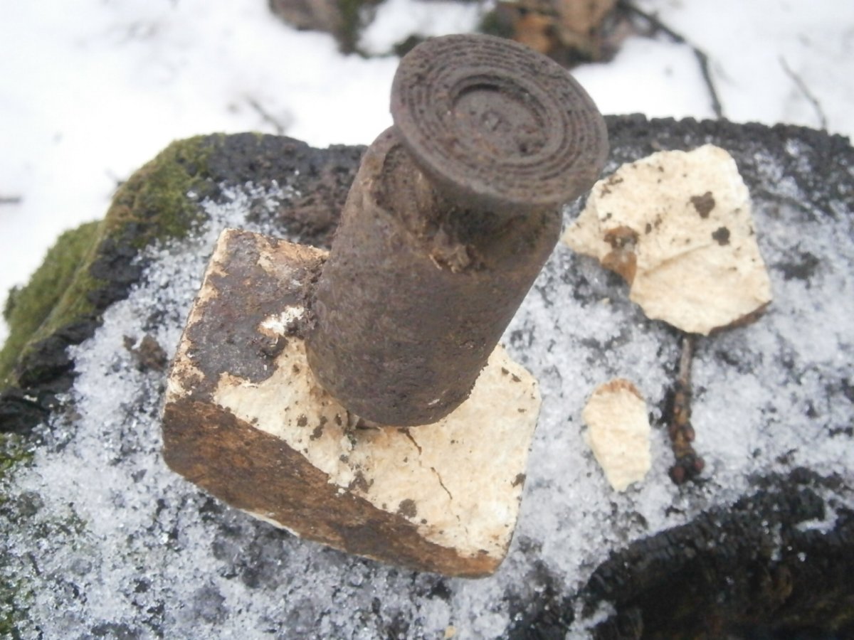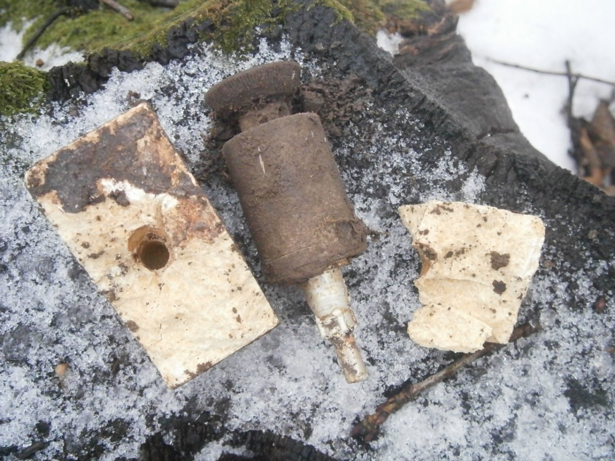 Здравствуйте! Выкопал вот такую штуку. Взрыватель вставлен в кусок тола или тротила или...не разбираюсь короче, цвета слоновой кости. Подскажите пожалуйста про предмету и его применение. Хотел ради макета забрать взрыватель домой но подом в голове щелкнул здоровый глузд). Все при копал назад под пенек. Сам взрыватель опасен в таком виде? Заранее благодарен за ответы.
