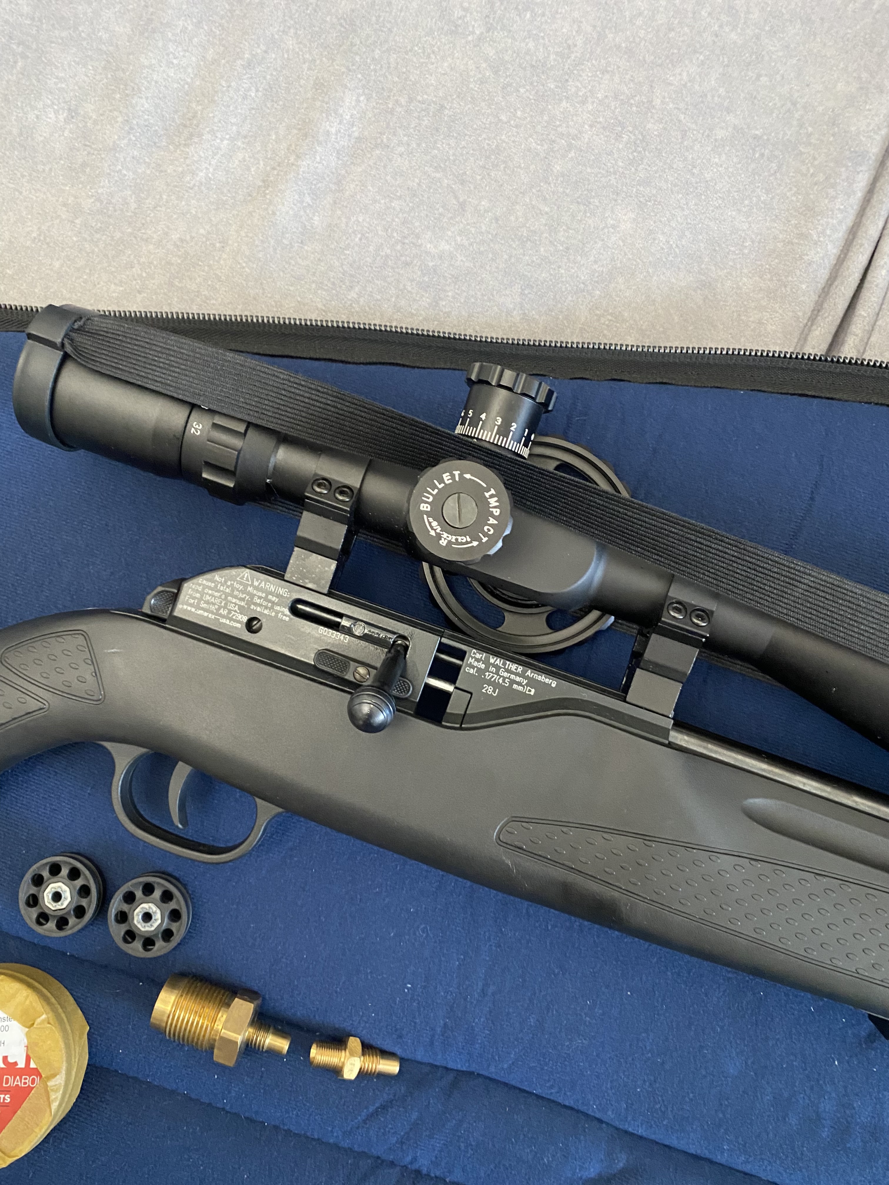 Продам можна сказати «легендарну» гвинтівку .Чистий німець Walther Dominator ствол ЛВ 600 мм.Стан лялька немає жодної подряпини .Навіть в районі затвору .Комплект оптика Walther FT8-32 56 .2 штуцери для заправки.Один на пряму з балона другий під насос або заправну станцію.Ціна 22000,00 без торгу вона того варта.