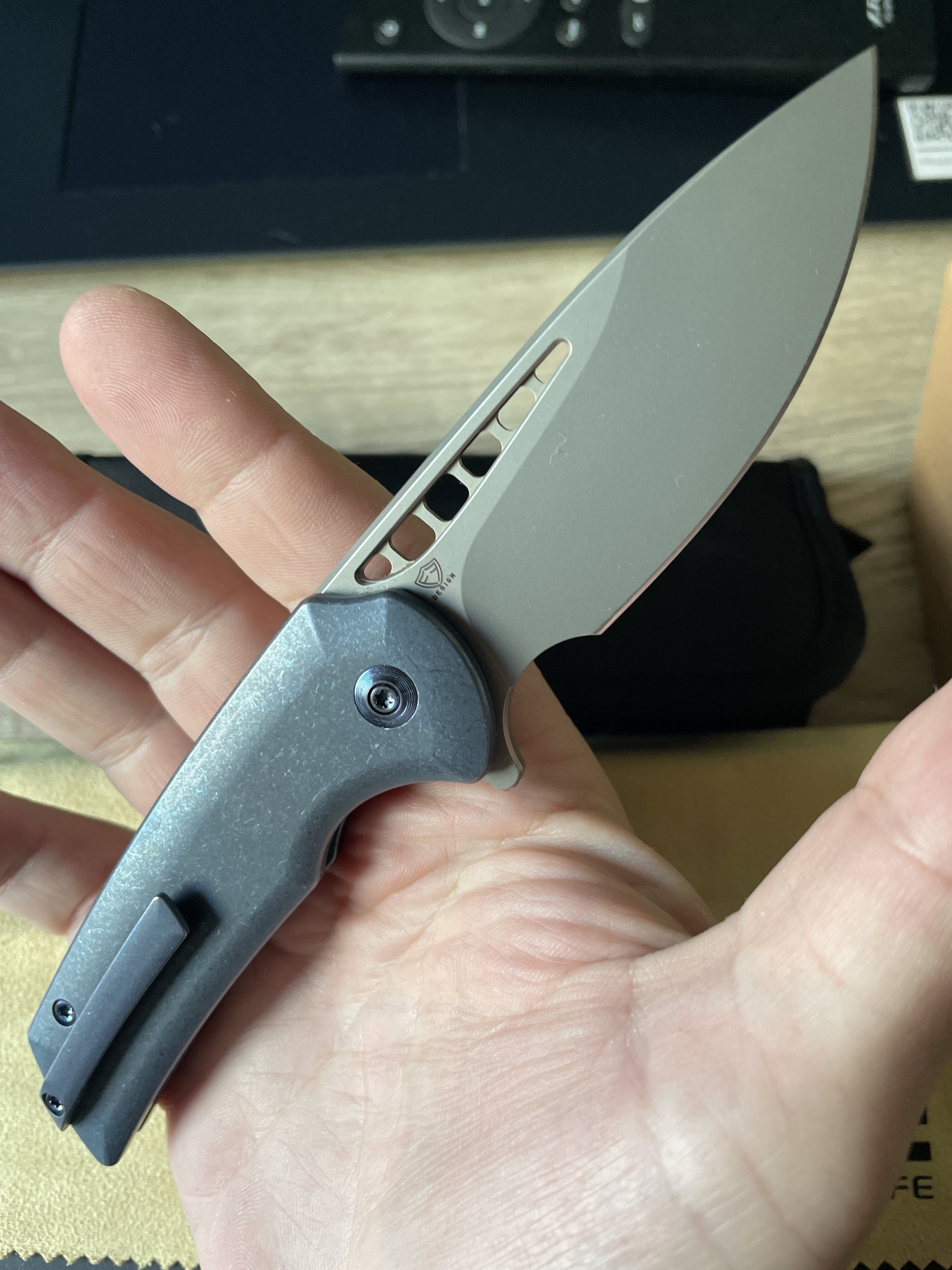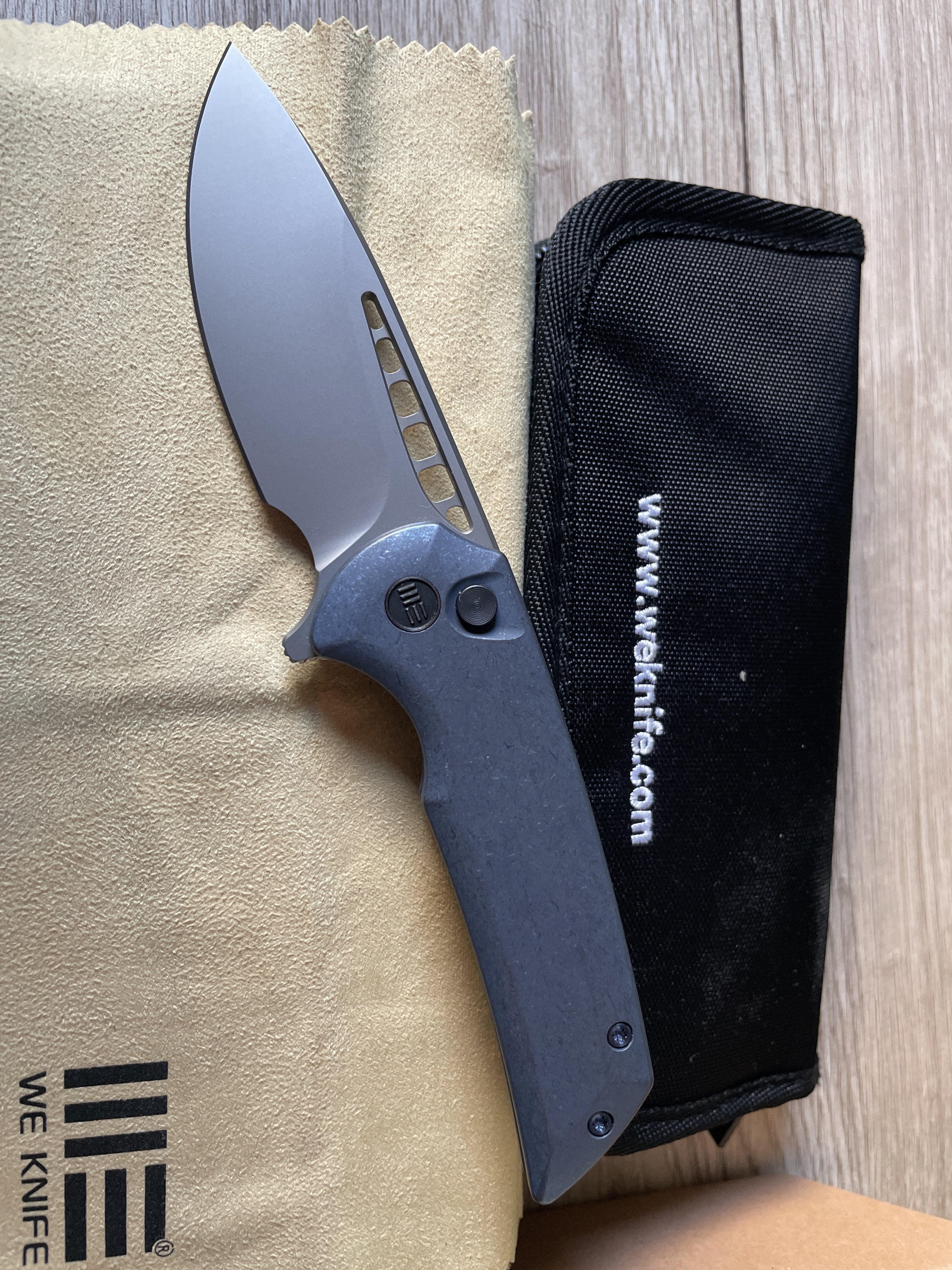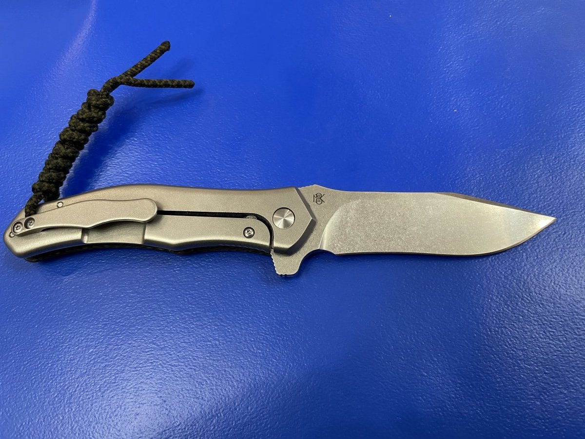 Продам WE Knife Co. Mini Malice Button Lock Blue Titanium Ніж у стані нового Ціна:250$(можливий не великий торг) Оплата на картку монобанк Відправка Новою Поштою характеристики: Overall Length: 6.93" Blade Length: 2.98" Blade Thickness: 0.13" Blade Material: CPM 20CV Blade Style: Drop Point Blade Grind: Flat Finish: Bead Blast Edge Type: Plain Handle Length: 3.94" Handle Thickness: 0.52" Handle Material: Titanium Color: Blue Weight: 3.40 oz. User: Right Hand Pocket Clip: Tip-Up Knife Type: Manual Opener: Flipper Pivot Type: Bearings Lock Type: Button Lock Brand: WE Knife Co. Model: Mini Malice Model Number: WE054BL-3 Designer: Ferrum Forge Knife Works Country of Origin: China Best Use: Everyday Carry Product Type: Knife