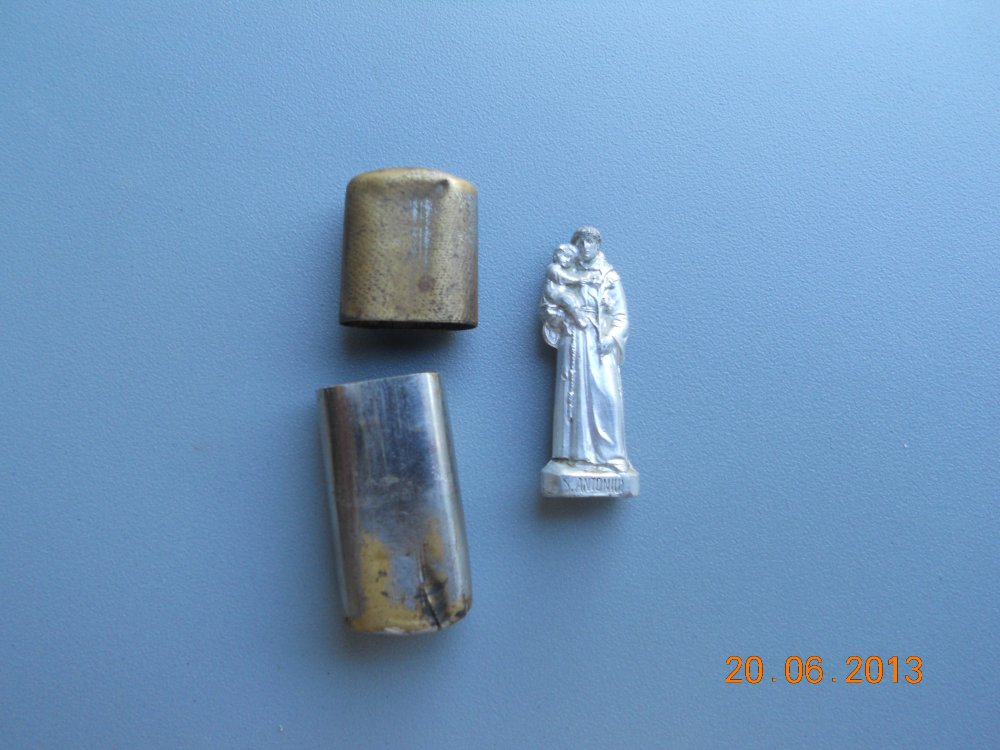 1. Наперсток для шитья вручную "Кавказ" 2. Ножикек для вскрытия конвертов. 3. Святой Антоний ПадуАнский (католический святой, исполняет желания) "...А еще Святой Антоний является покровителем детей...." 4. Ранняя звездочка с головного убора РККА. 5. Иголочница-наперсток "Легран" 6. Иранская монета достоинством в 5 риалов...