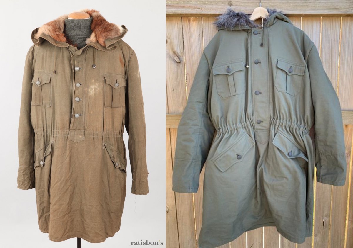 Є розрізнені теми. Хай буде одна спільна. Ось трапилось фото декількох оригінальних парок, що зустрічались в харківській операції. Одна є просмальцована, а інша ні. Чи хтось знає чим жирували німці речі? Спочатку буде фото знежиреного варіанту, а потім просмальцьованго. На вашу думку, що за тканина використана? В даній темі я пропонував би оговорити репліки, котрі зараз представлені на широкому маркеті.
