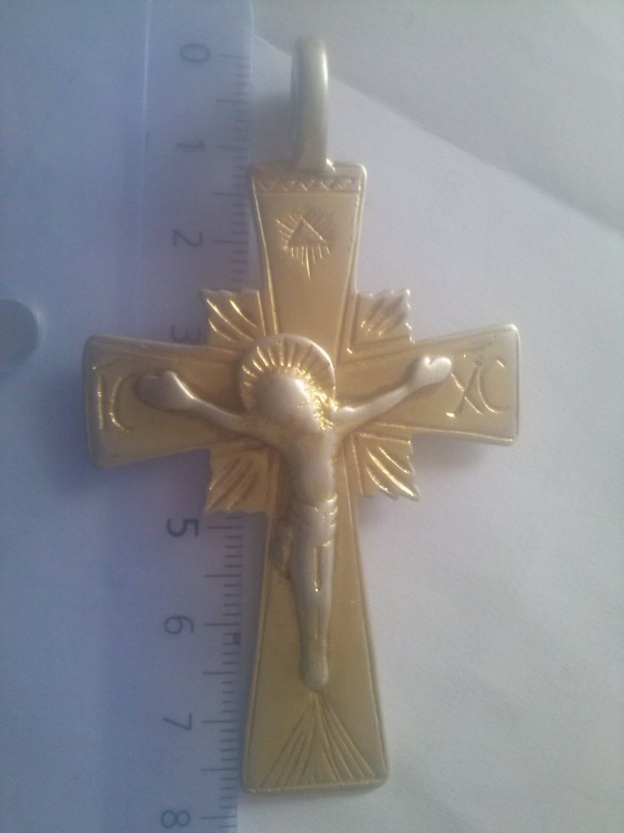 серебрянный и был позолоченный, сам чеканный крест и литая фигура приклепана, клеймо "яе" на ушке. Но ниче по нему не нашол, только что наперсный (нагрудный) он.