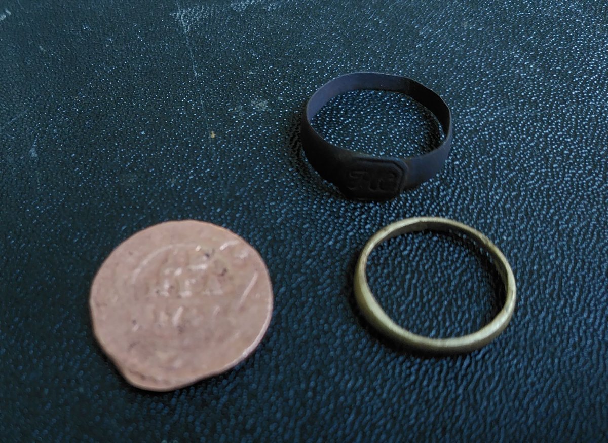 Гильза - раздутый наганыч, видимо стельнула в костре. Чистка монет - в лимонке, в мыльном растворе, в уксусе с солью, электролиз - способов много и все подходят, выбирай какой по душе, на ютубе много видео по этому вопросу.