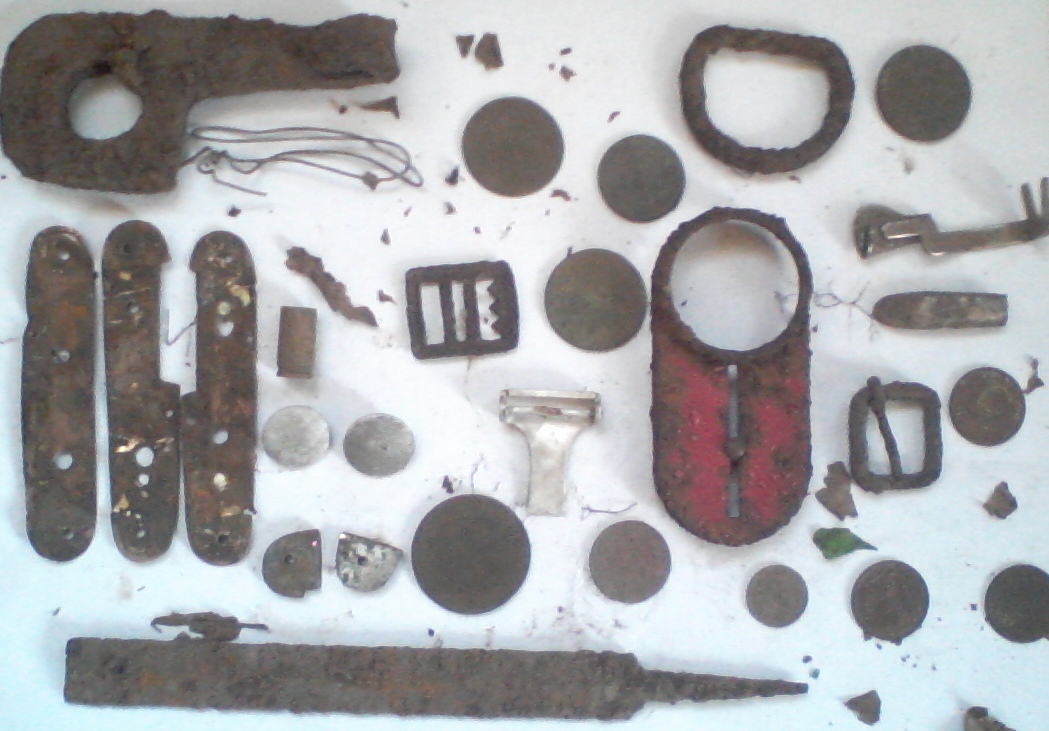Ладно. Вынудил, Garikk. В подтверждение ниже сказанных слов, покажу Вам находки за целый день. Вот Вам. Чтоб у Вас и таких же ваших единомышленников (если таковые имеются) не возникало подобных мыслей: "я как посмотрю здесь всего несколько человек выкладывают свои отчеты. на пальцах одной руки можно пересчитать желающих поделится своими отчетами. другие же просто читают ленту и тролят сообщения других. переливая слова с пустого в порожнее. толкут воду в ступе. по другому не назовешь". Как и говорил - позавчера, целый день. Единственное, что утешило, маленький замочек. У меня такого ещё не было. Найден возле окопа. На задвиге, что закрывает замочную скважину, надпись. Пока не разобрал, что именно. И без малого 3 кг. настрела. Вот и всё! Я, думаю, у многих бывают такие "холостые" выходы. Поэтому камрады и не выставляют "отчёты о проделанной работе". А Ваши, Garikk, рассказы о найденных раняхах, царских пятаках и серебряных рублях, на сегодняшний момент, так и остаются, к сожалению, ни более ни менее очередным пи.дежём. Но мы, всё ещё ждём: