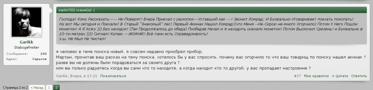 Во вторник себе сделал выходной. В толпе мне последние несколько недель совсем не фарт по этому выехал на место, где в апреле Прапор поднял прягу СС. Все было хорошо пока не пришел местный которому было скучно. И вроде нормальный человек, но после того как он пришел находок ноль.