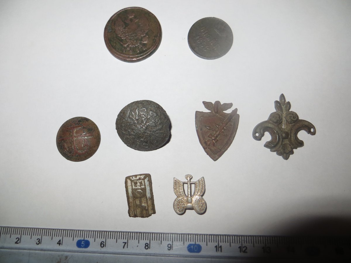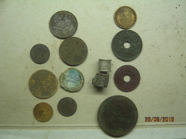 Доброго вечера всем,сразу отчитаюсь о долгом отсутствии)).Вообщем немного не повезло мне,разлетелся на точиле камень и долбануло в глаз.Как всегда думал что немного по болит и само пройдет,но не тут то было.Неделю посидел дома,стало только хуже,поехал в город в больницу,посмотрели врачи и сразу положили в стационар,так, как началось воспаление и какие то спайки в глазу.Вообщем провалялся две недели в областной больнице и еще неделю дома не мог сесть за компьютер,в глазах двоилось.Ну сейчас вроде как немного зрение начинает востанавливаться и вчера прошелся немного по огороду дома .Негусто конечно но кое что нарыл.Отчет прилагаю Интересуют две вещички,которые во втором ряду с права.Подскажите пожалуйста,если кто знает,что за изделия?