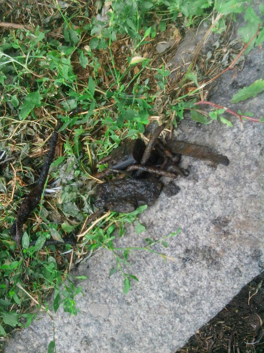 В общем сходил я на речку возле центрального рынка.Кидал и с моста,и под ним.С моста-куча ржавчины и краски со дна поднял,и 2 раза по 5 копеек.Под мостом нашел несколько проволок,замок,2 копейки,какие то железные уголки и гвозди.Люди особо не приставали,несколько человек спросили,что я делаю-я отвечал что ищу металолом магнитом.В один момент магнит где то застрял,веревка порвалась.Пришлось доставать его крюком-кошкой.Надо будет купить веревку получше.Следующая локация-Донецкое городище.Фотоотчет прилагаю.