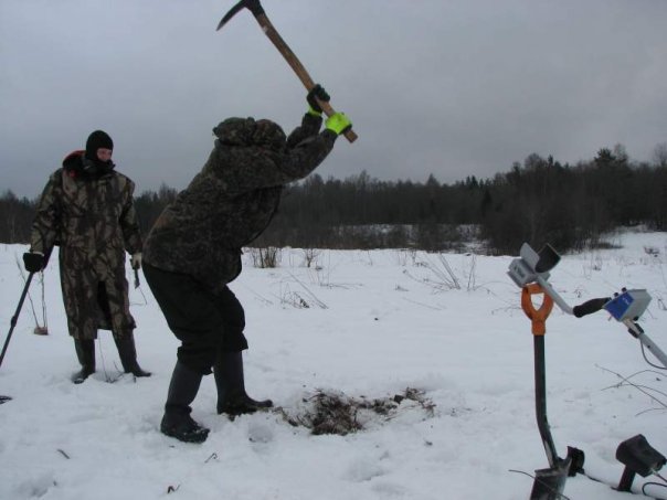если есть большое желание покопать, точнее сказать подолбить промерзшую землю на поле, нужно взять с собой соответствующий инструмент, только такой поиск будет уже не совсем в удовольствие.