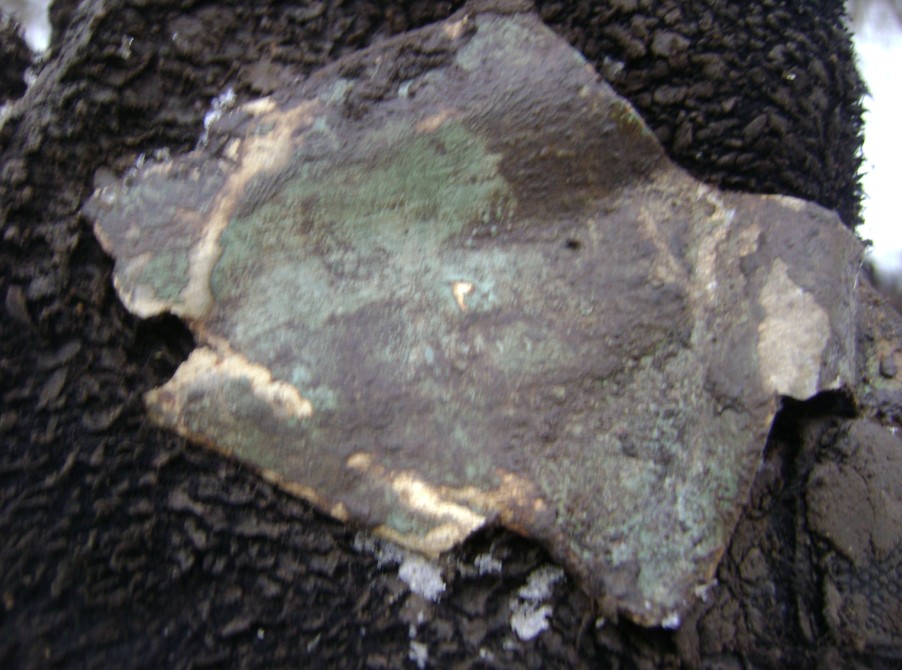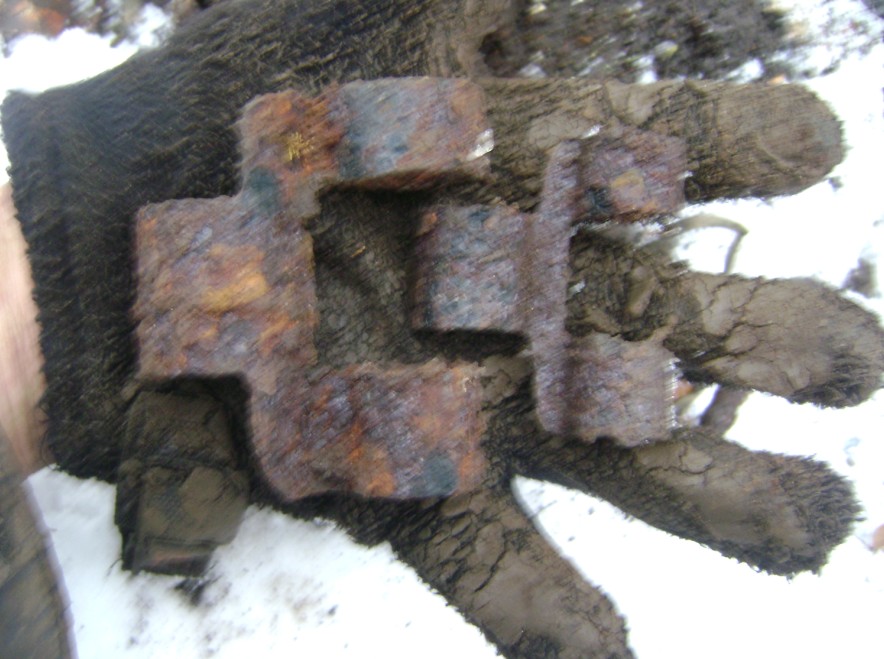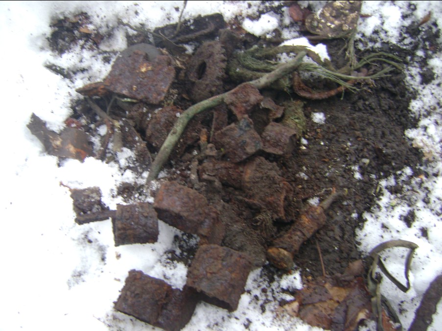 Здравствуйте Камрады. Сегодня решил пройтись в лес. Назвонилась яма с деталюхами,походу место падения самолёта. Судя по звеньям боекомплекта и цвету обшивы самолет был наш. Среди разного рода рванины,попался шильдик,и целая деталь наверное какая то дверь,может бомболюк?
