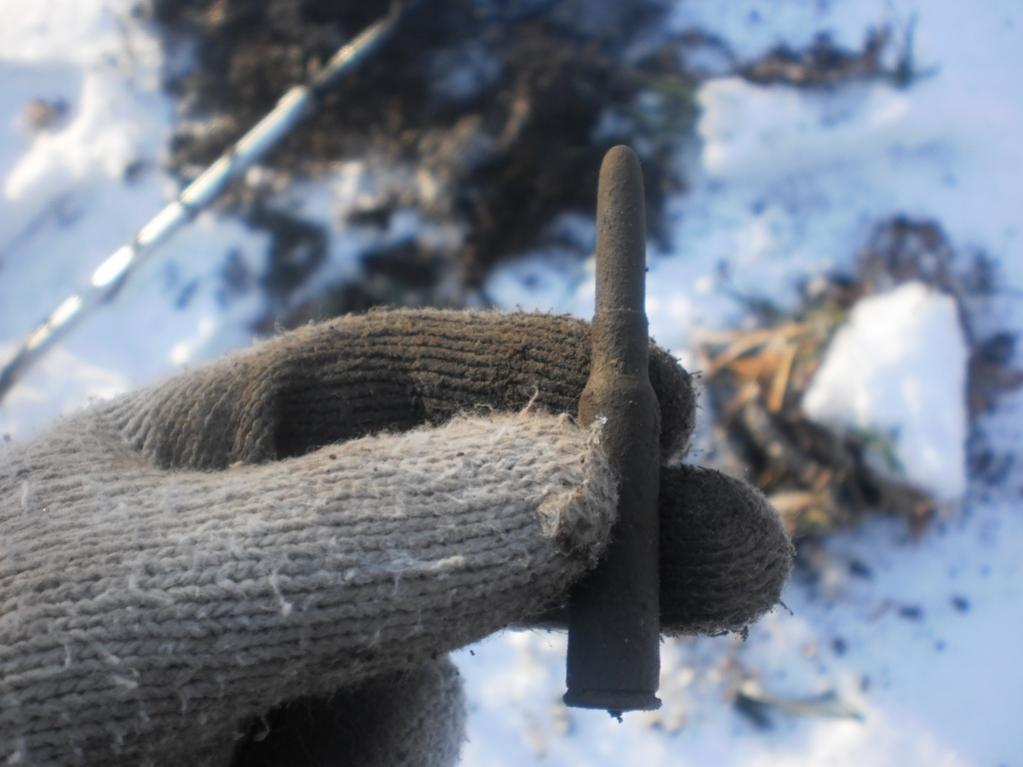 Всех с новым годом! Сидеть дома с тазиками оливье и безмерными рюмками огненной воды уже не в моготу. Решил открыть сезон 2013 , находки не ахти , но и не пустой По пути к искомому хуторку набрели на мини-кладбище В лесу копается ещё лучше чем летом, земля под снегом и лиственной прослойкой - чистый пух. Кореш взял ружжо в надежде на дичь - но не свезло. Пару часов на свежем воздухе + небольшой перекус на природе результат на фото + в этой теме http://reibert.info/forum/showpost.php?p=3514166&postcount=23 "гвозди" уже ММГ , кстати мосин с мельхиоровыми пулями часто встречается ( за 2-а года первый раз попались) клейма: вверху 17 внизу 30 (Луганск , 30 год?) сохран порадовал Всем удачного копа в новом году