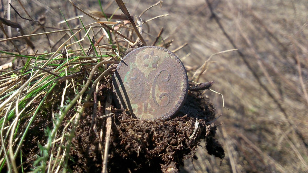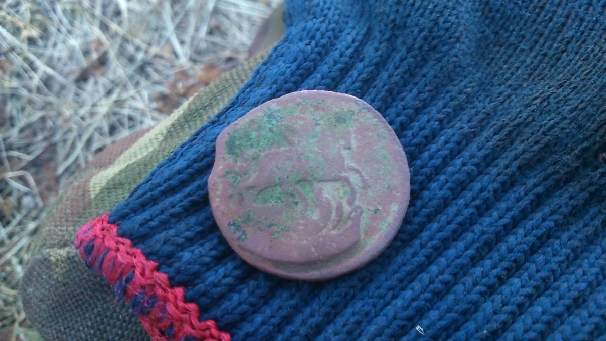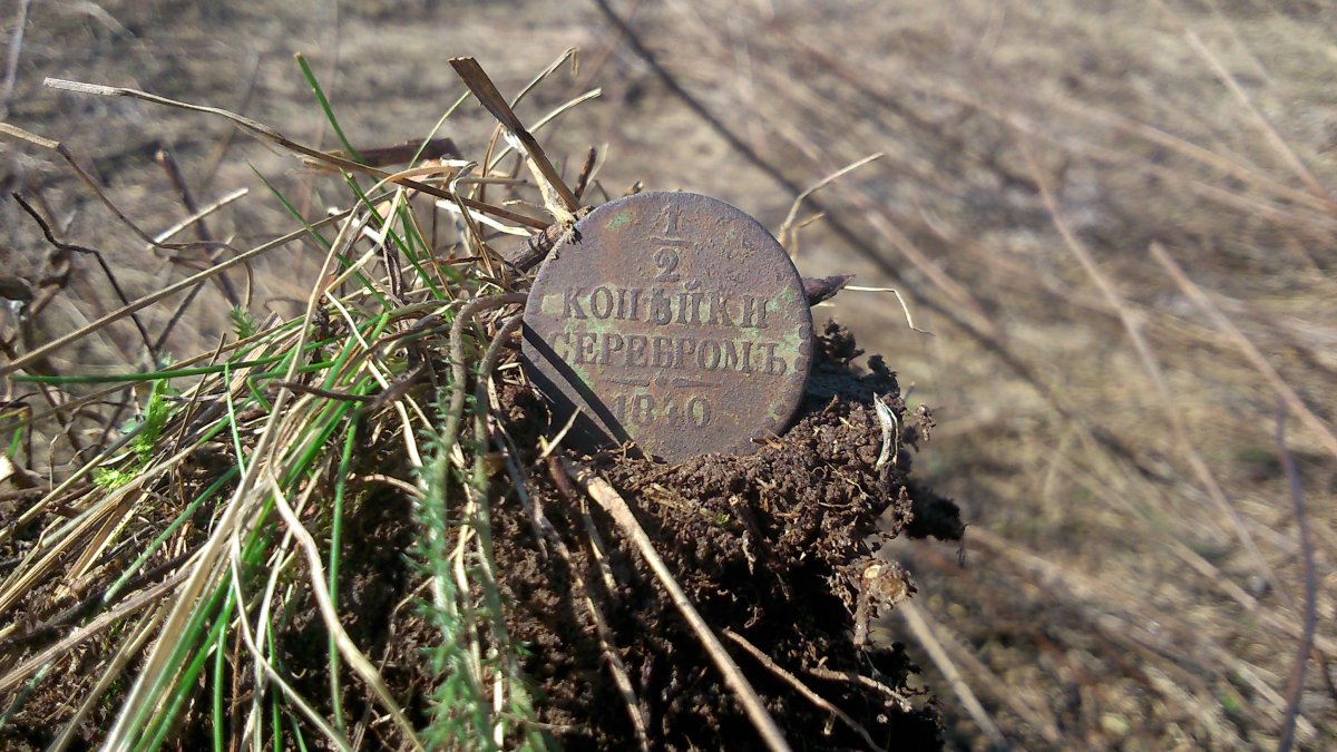 Приветствую всех! Первый полноценный коп сезона. Бродил весь день, итог - сов. копейка и 1/2 Николая І-го. За час до отбытия домой дернул ещё три монетки, все друг от друга в 5 метрах . При том, даже не думал, что там что-то может быть, кроме гильзача. Снег остался в основном только на северных склонах. Дернуло зайти на вспашку - погруз по колено . Островерховка