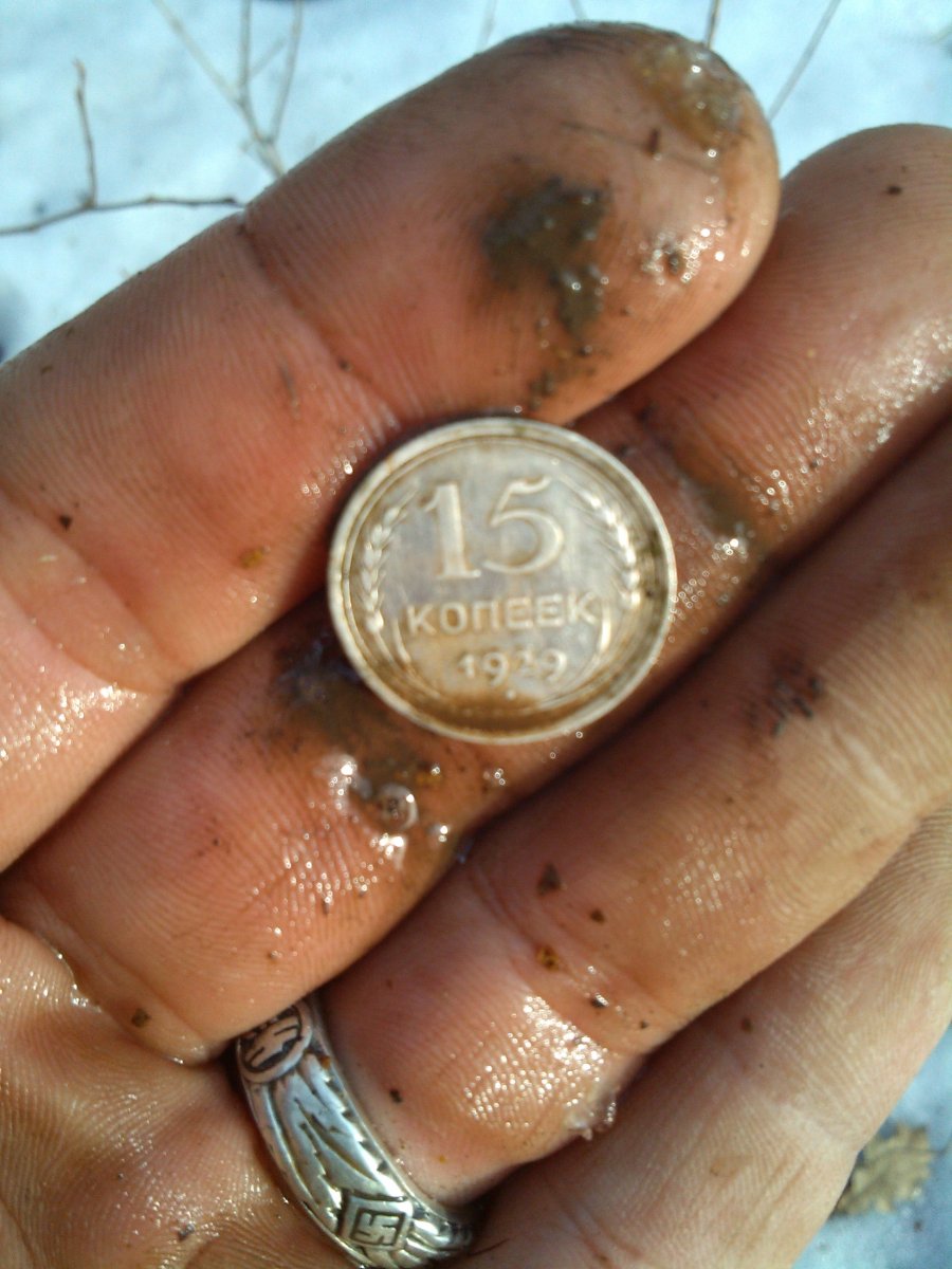 тоже первый раз сегодня в этом году.убитая ложка-безвилка нашлась черная(отломаной вилкой)))20 копеек 31 года и вот такая ерунда в виде ножниц.подскажите кто знает откуда они такие.спасибо.извините за фото