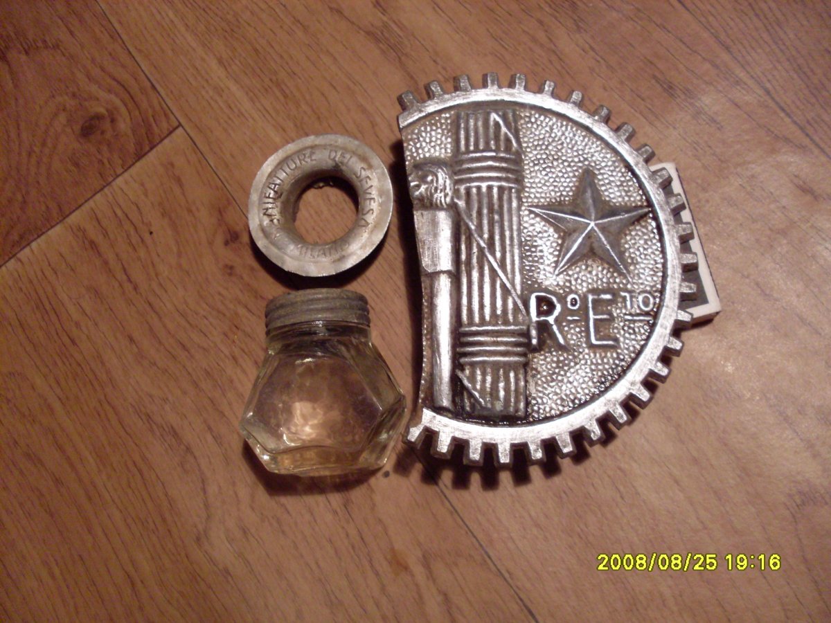 Я сегодня тоже чуть копнул,фашистская италия) жалко кусочка знака нехватает)))думал рядом лежит,облазил вокруг,нету,видать где то в другом месте остался,итого с одного места итальянцы нам оставили),знак шильдик с техники,люверс из Милана и баночка из под чернил походу из Парижа)
