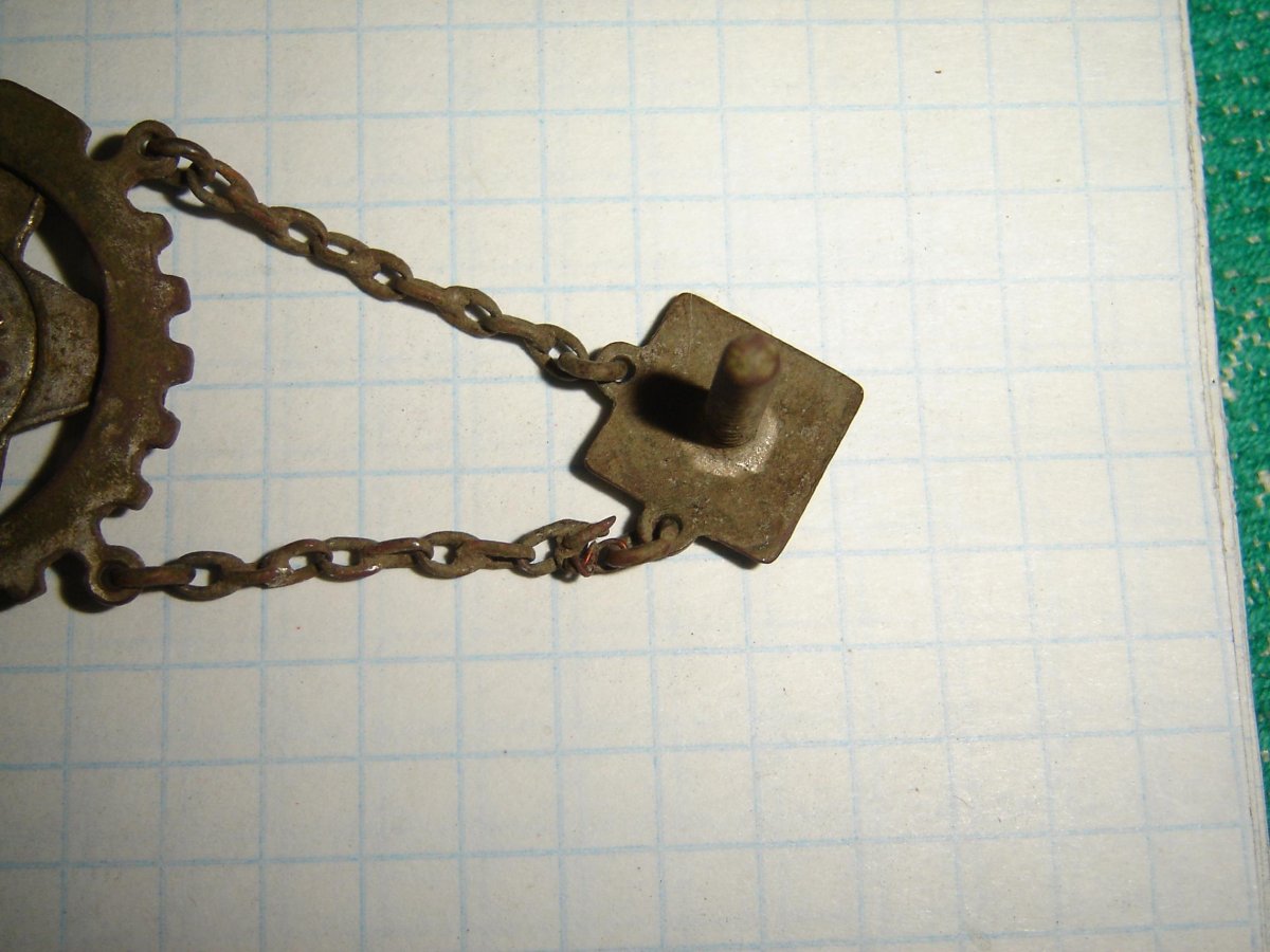 Что интересно хозяин потеряшки еще в то время ремонтировал цепочку .Звено возле подвески скручено проволочкой. Наверное ценил этот знак.