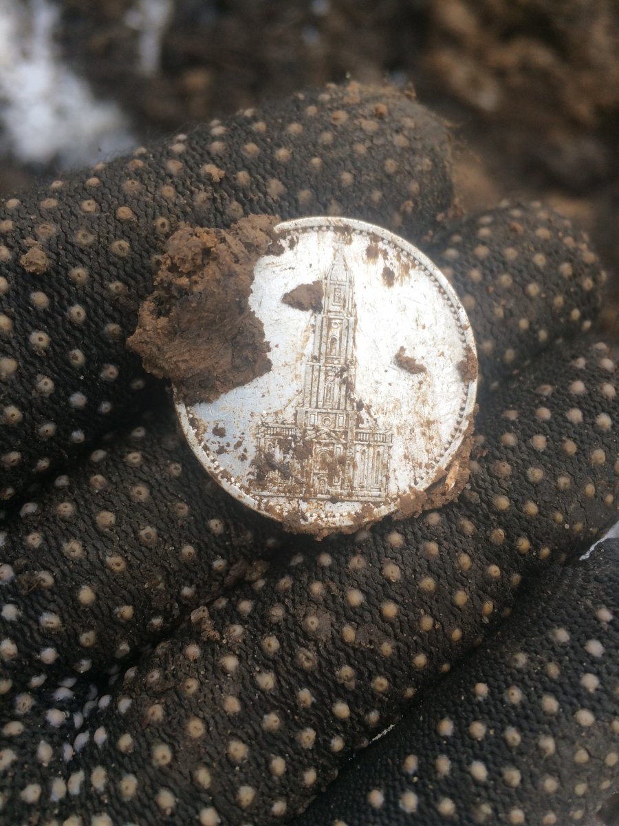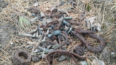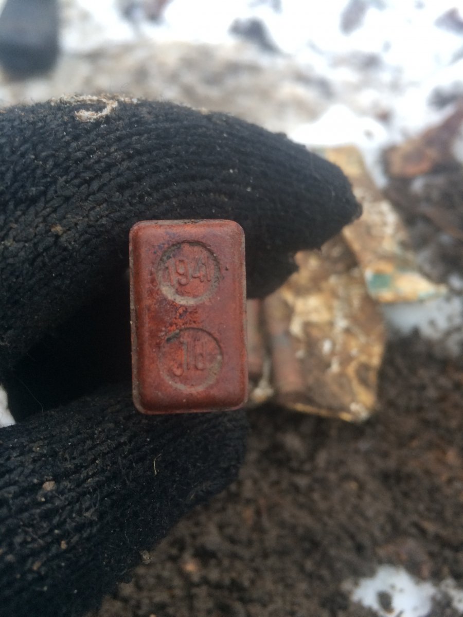 Сегодня далеко не ездил,шурфил район Анжера,дома нагрел,а вот по находкам выскочила железная гильза солотурна,в сохране.Маркировка 20d.