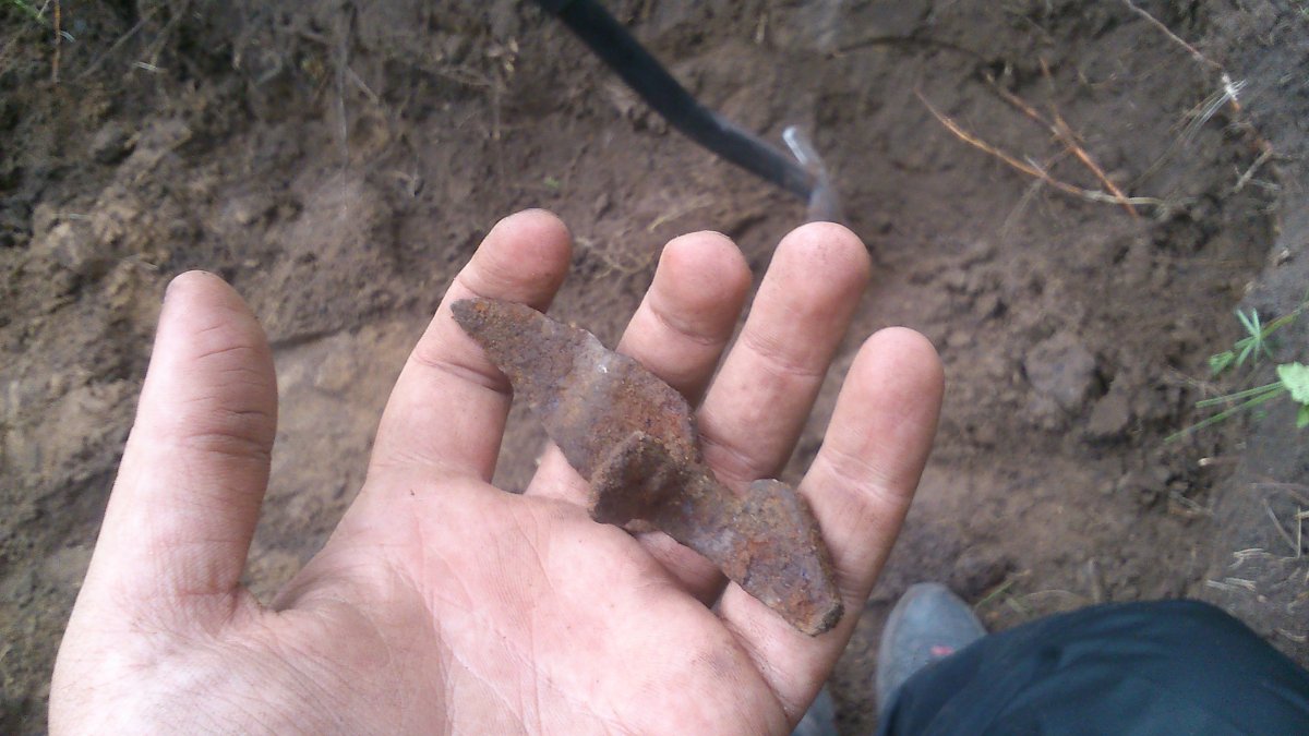 Коп был очень сложный и один из самых печальных ( Много надежд возлагал на место, а в итоге кроме гильз, шмурдяка и непонятных колпачков (была мысль от вопов), ничего нет, да ещё целый день по гребаным кустам ходили, там до нас лет 10 точно никто, а может кроме саперов вообще никто не ходил. Зато нашли 4 мотка колючки)). Вначале был протяженный сигнал на пулемктной точке, думал, авось кулэмэт, но потом через несколько часов все прояснилось. Зато поржали от души, скатили одну с горы, катушка укатилась далеко по лесу, в болото. Рогачей выкопали дофига в корнях того дерева (жуков, а то подумают тут ещё), друг хрен знает сколько копал сигнал, а оказалось подземный кабель)) И смех и грех.