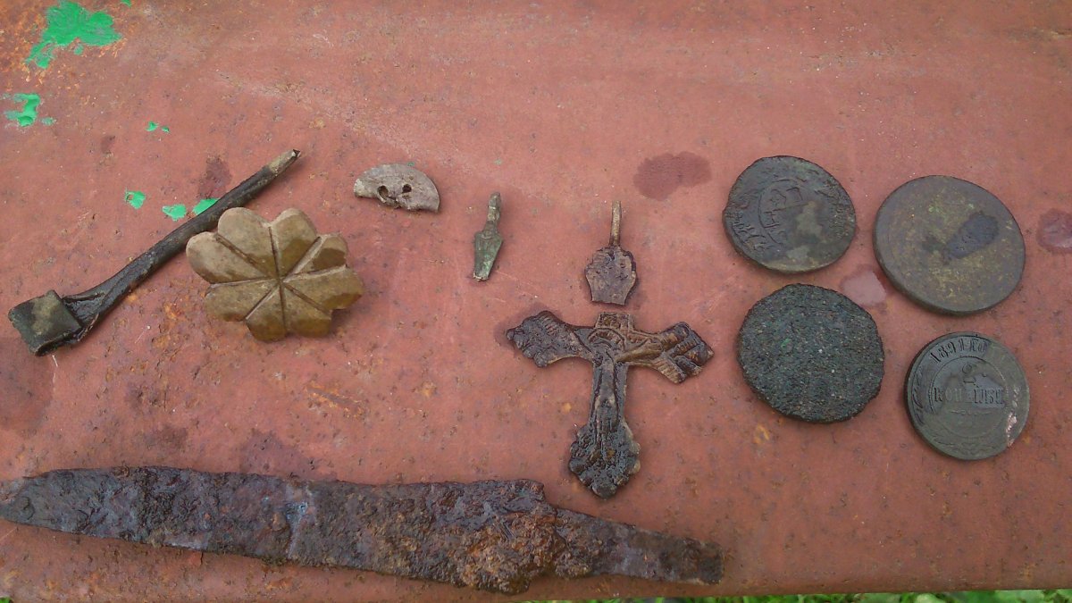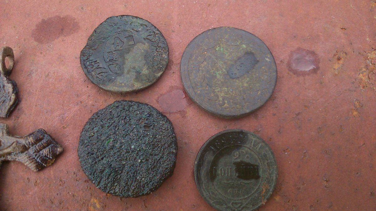 Всем привет! Покопался по жаре пару часиков на фундаменте царской наливайки. П.С. Подскажите по сережке? Клеймо буквенное, видится КАО или что-то подобное.