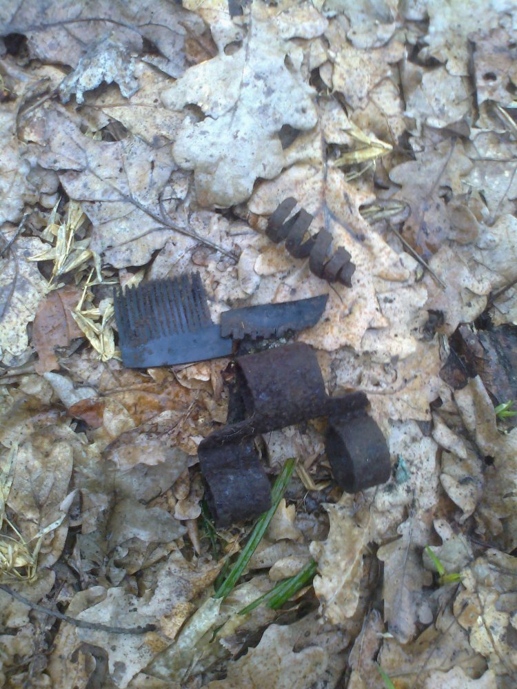 Возле дороги попадались ВОПы по окопам, а потом одни осколки (в основном), видать бомбили там крепко тот лес, а вот огневые позиции подчистили, в том числе и нашего брата там носило, покопано прилично. По войне возвращаться в то место нет желания, без толку, возможно с другой стороны леса и есть что-то. Что касается хуторов, то ходили по урочищам Гонтар и Дубине, но признаков жизни в данной месности не обнаружили обидно, но день прошел не плодотворно, хотя погода была просто супер, да и так хоть кости после зимы размяли