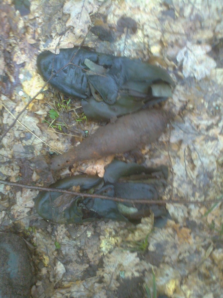Возле дороги попадались ВОПы по окопам, а потом одни осколки (в основном), видать бомбили там крепко тот лес, а вот огневые позиции подчистили, в том числе и нашего брата там носило, покопано прилично. По войне возвращаться в то место нет желания, без толку, возможно с другой стороны леса и есть что-то. Что касается хуторов, то ходили по урочищам Гонтар и Дубине, но признаков жизни в данной месности не обнаружили :( обидно, но день прошел не плодотворно, хотя погода была просто супер, да и так хоть кости после зимы размяли :)