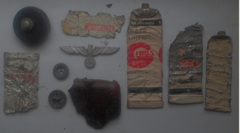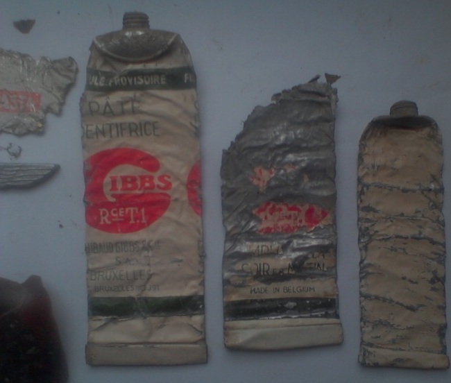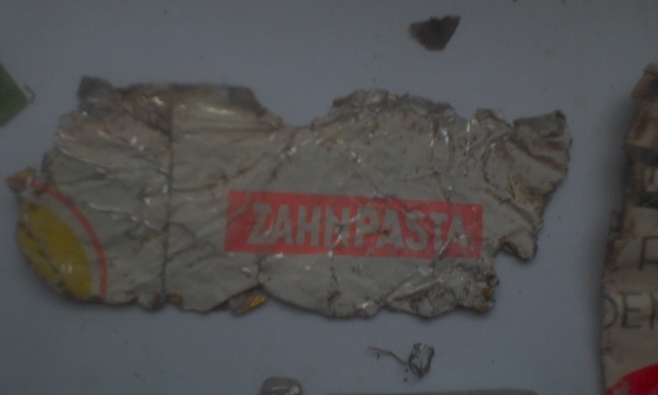 И ещё, кусок прямоугольно-вырезанного куска алюминия, может кто знает, из-под чего кусок? Не с Германского ли ящика МГ(окрас красный, две дырки вреде бы как пулевые).