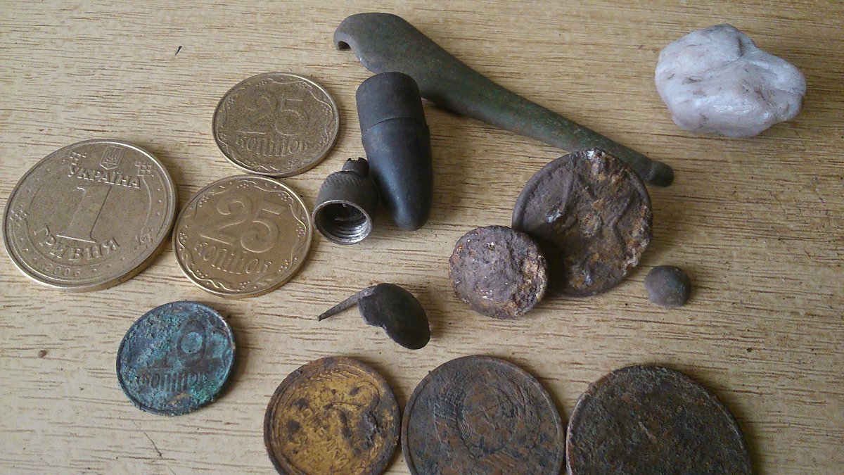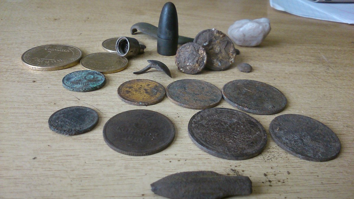 Всем доброго вечера! Пока жара, на огороде работать не получается. Но вот побегать с мд - это мы всегда пожалуйста, хоть в +40 . Как и говорил ранее, поехал в 10 утра на урочище в соседнее село, где косили траву в воскресенье. Травку убрали, но вот монеток не завезли . Нарыл 10 кг чермета и попер домой, ибо больше в рюкзак не влезало. После обеда побежал в лес. Находок не много, но есть. Порадовал маленький наконечник и пуля (Веттерли-Витали если не ошибаюсь). Всем удачи!