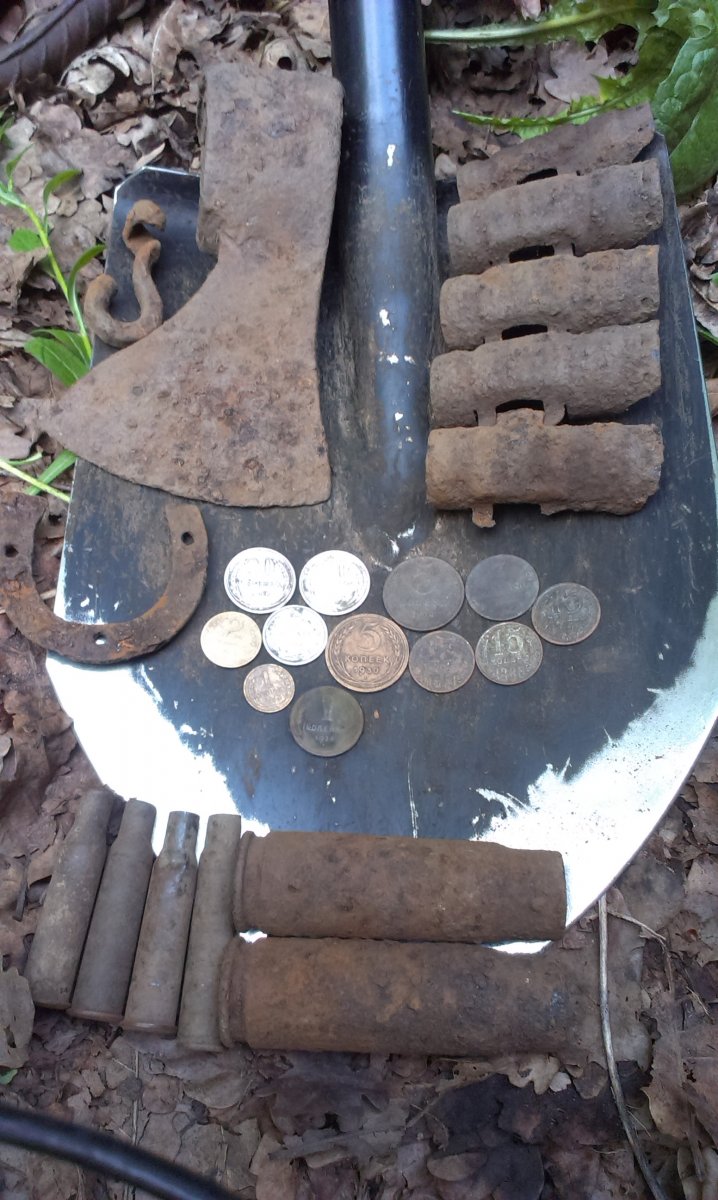 Рядом нарыл ещё хабар. ( крайняя левая серебруха - явно задняя часть знака, всё облазил, морду так и не нашел.. облом, может кто-то знает с чего?)