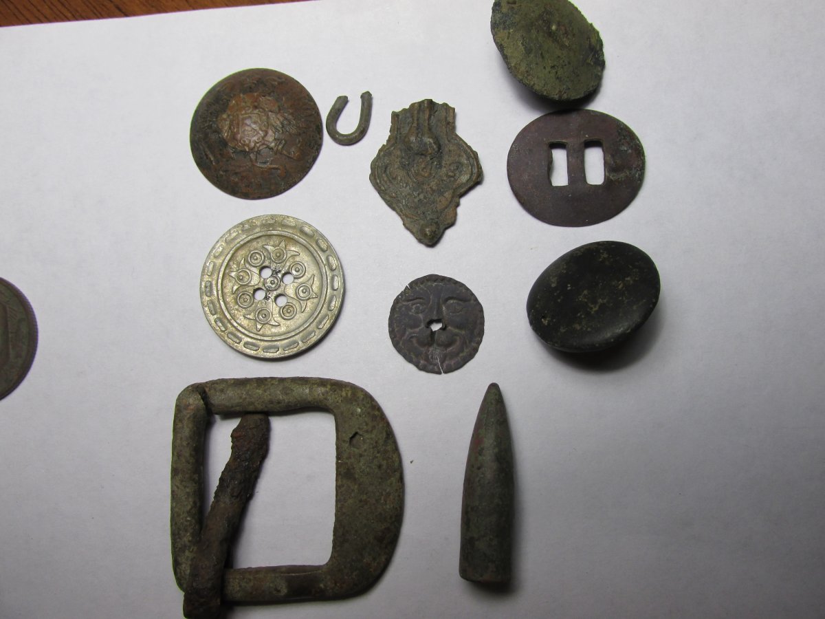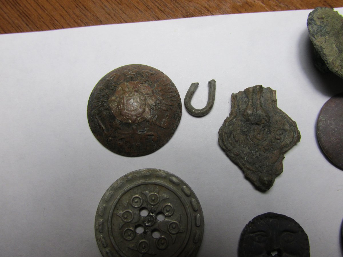 Привіт колеги! Прогулюючись з камрадами просторами нашої безмежної та красивої батьківщини DSC_0312.jpg DSC_0312.jpg DSC_0313.jpg DSC_0316.jpg DSC_0318.jpg DSC_0319.jpg були знайдені такі знахідки IMG_0978.JPG IMG_0980.JPG IMG_0982.JPG IMG_0985.JPG IMG_0987.JPG IMG_0988.JPG IMG_0983.JPG IMG_0989.JPG IMG_0990.JPG порадувала пуговка,давно таку хотів, але "печалька" приїхавши додому, відкривши хабарницю побачив відламане вушко:(,Підскажить може хто знає що то за кружок нижче кусочка хреста, таке як морду льва нагадує?