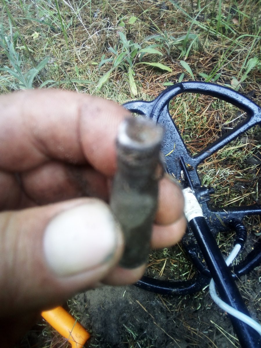 Доброго вечера Камрады. Сегодня и мне удалось , вечером сбегать в лесок, искал дом лесника , нашёл только метрах в 500 от значка на навигаторе, нашёл но искать уже некогда, начало смеркать. Зато место для следующего выезда есть. пуля забита обратной стороной , в етом есть какойто смысл? может кто подскажет что ето за штуки? и с домика лесника Всем мира и фарта.
