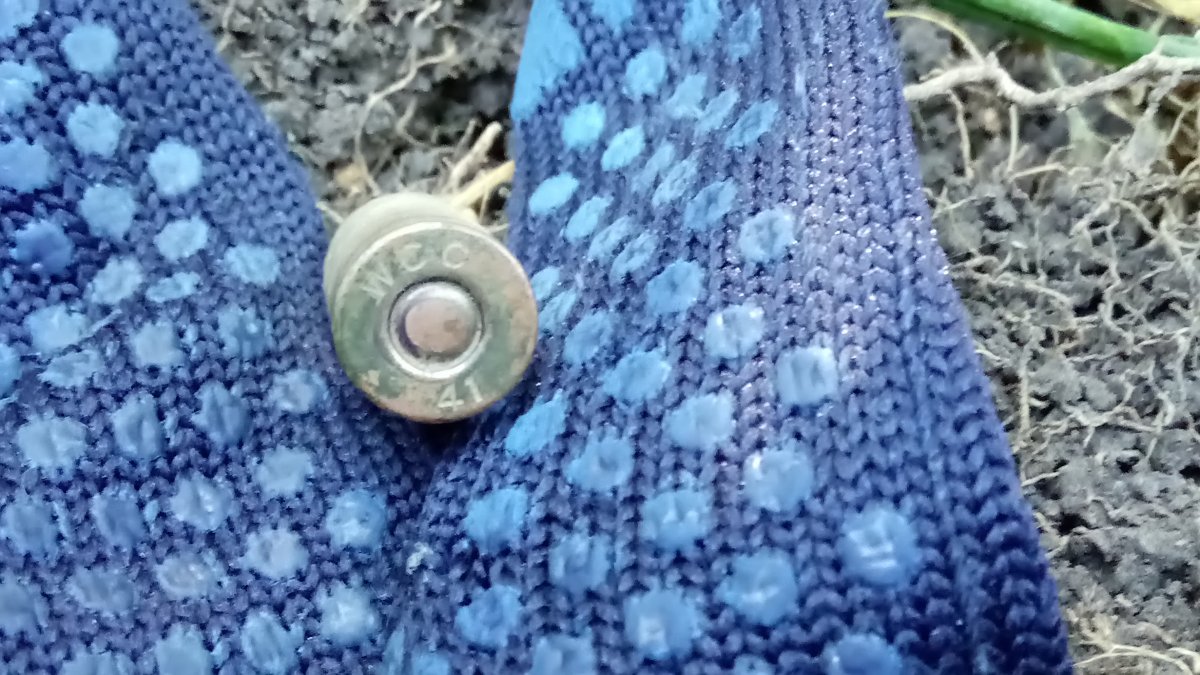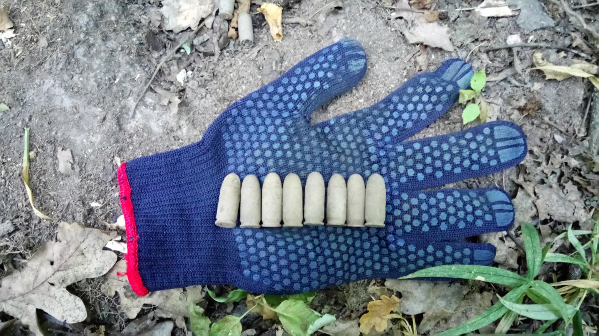 Всем привет,в воскресенье мотнулся в лесок где в прошлом году ЖК поднял.Яма на яме,цветных сигналов почти нет,но зацепил подсумочек ПТРов в неплохом сохране.