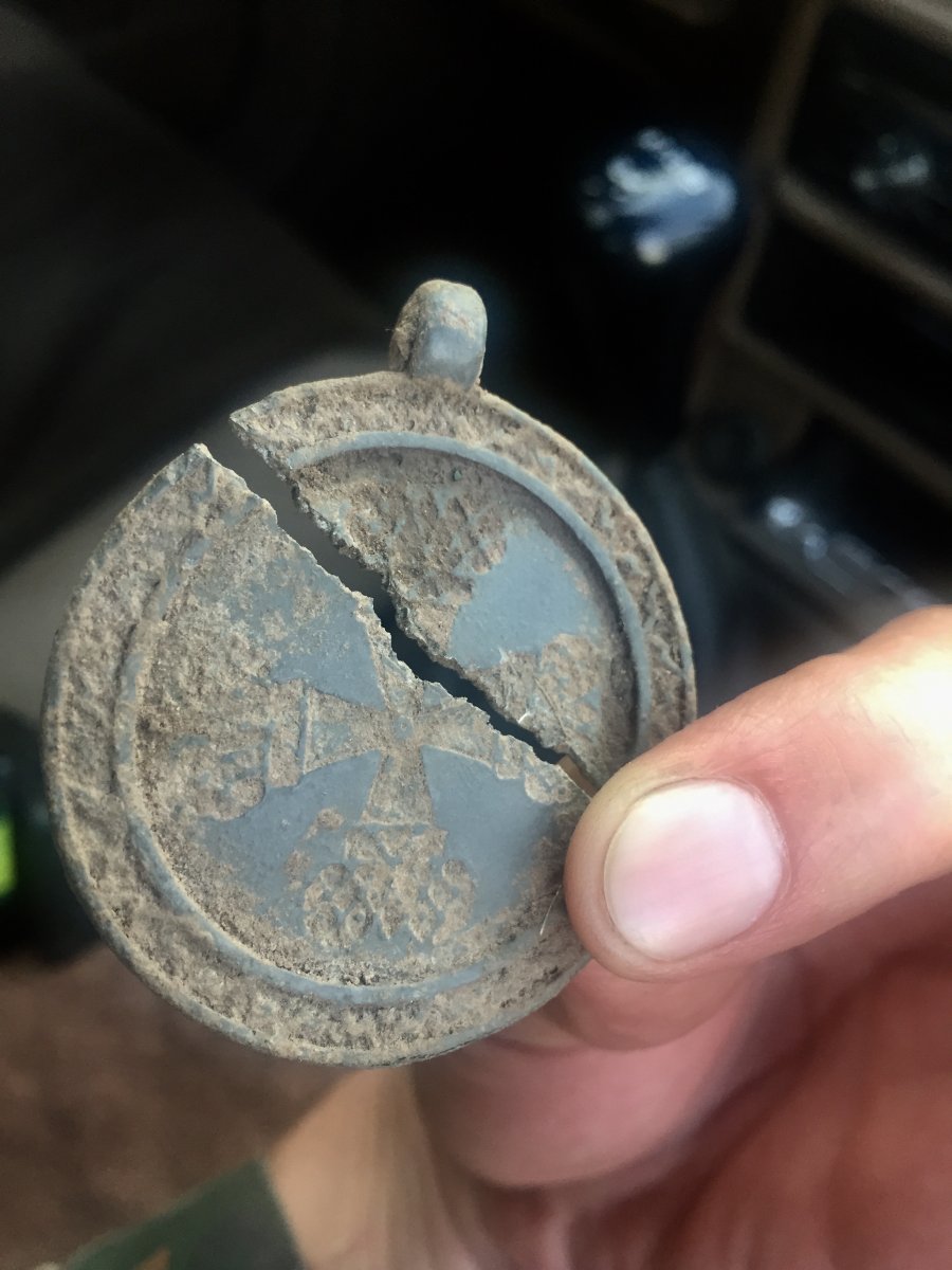 Находки есть, это не может не радовать. Копал в этом году всего 2 раза и второй выезд вообще с нулевым результатом. Хотя копаю лет 10. Зато встретился со старыми корабельными товарищами. Вот находка одного из них.