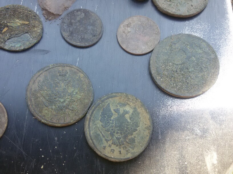 Всем привет, вот и добрался я к тещиному огороду, год назад ходил там с недоприбором Квазар, в начале весны попал лишь на 20%незасаженной площади, а теперь он весь мой был сегодня почти два часа, кстати до конца его не добил, но там уже почти не было сигналов, а я уже изрядно пригрелся на солнце вот и решил свернуться. Вобщем коп как по мне удался, теперь осталось все это в мыло загрузить по приезду домой, В этом году прет на медный 1924, уже две по одной копейке, одна трешка, и сегодня огромедные 5 копеек, так же вырисовываются неплохие две царицы полей 1811 и 1812 года, хоть они и дешманские, зато сохран радует, так же еще одна царица в сохране чутка похуже, и одна империя пока неопределима, может после мыла будет немного видно.