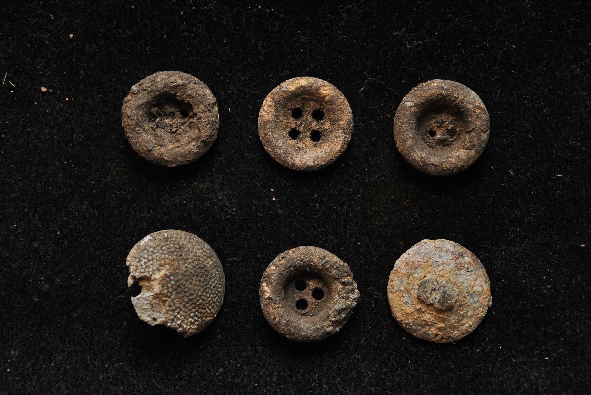 Ну не знаю, бывает полно этих пуговиц - мне как то один местный житель в районе Коломака, увидев меня с мдшником, показал где зарыты немецкие солдаты, как он рассказал что их сгребли в кучу и просто накрыли брезентом и прикопали, я ему пытался объяснить что копаю монетки, и не суюсь на могилы, а он пошли да пошли. Короче не поверил ему и решил проверить - копнул при нем пару ямок, и сразу тряпье полезло и пуговицы, я сразу оттуда - ну не мое это могилы копать. На фото пуговицы с двух ямок на штык, я думаю их там десятки.Так что всякое бывает - я по войне не копаю, а пуговицы прут)