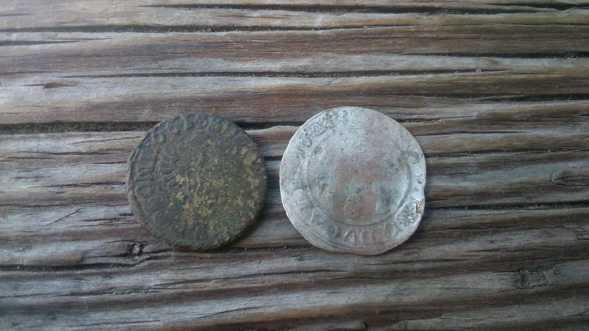 Всем доброго дня! Вчерашний улов к вашему вниманию Порадовало очередное колечко (из оловянистой бронзы, жаль камни были из какого-то рассыпчатого материала, разрушились) и пара польских монеток - медный солид Яна Казимира 1661 г. и билон Сигизмунда 162* г. (не знаю номинала, диаметр 17 мм, может кто подскажет). Всем удачи!